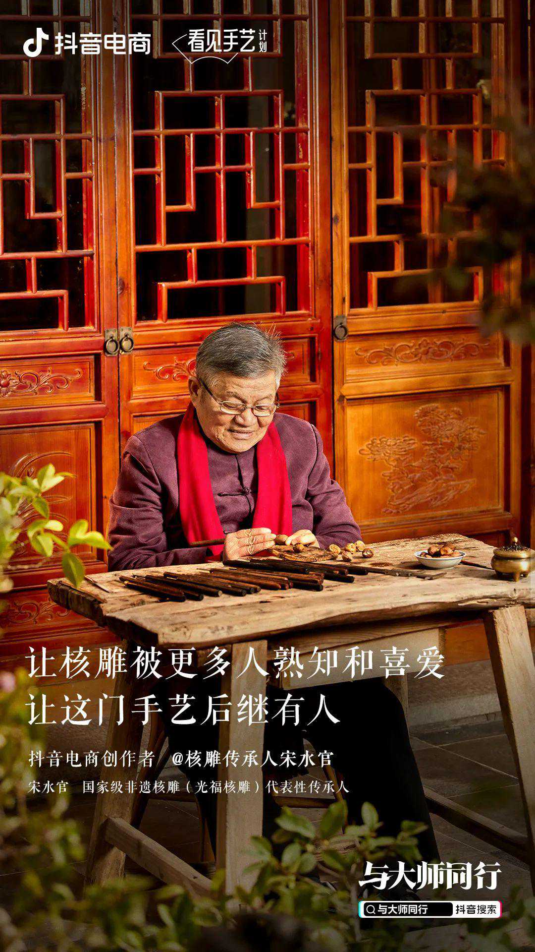 在宋水官的见证下,核雕样式从最初的20多个,变成10000多个;核雕的销售渠道,从六七十年代的点对点销往上海城隍庙,到如今的线上线下两开花。对抖音电商的探索,更是成为了核雕产业发展的一个标志性分水岭。