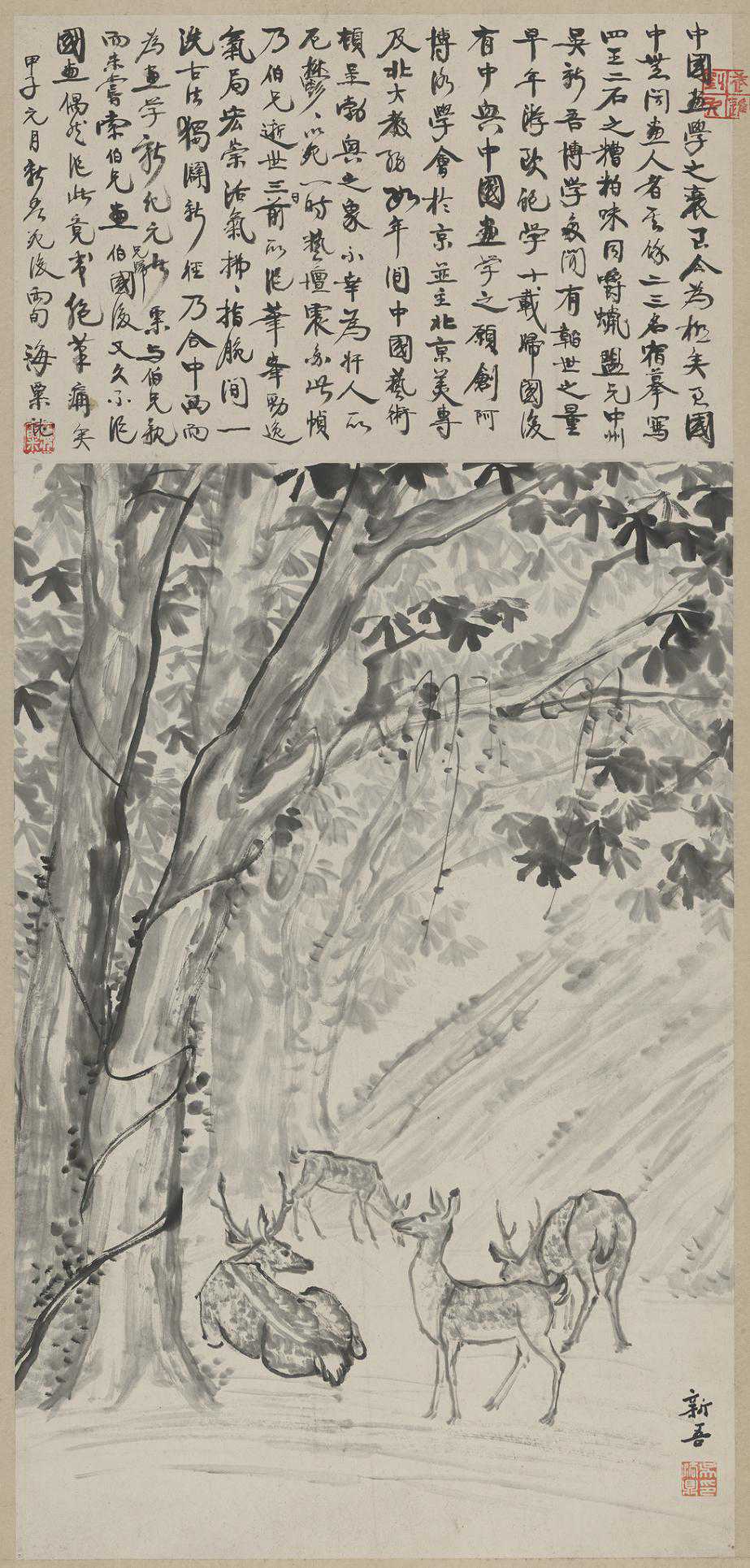 吴法鼎《四鹿图》,纸本水墨,1924年,刘海粟美术馆收藏