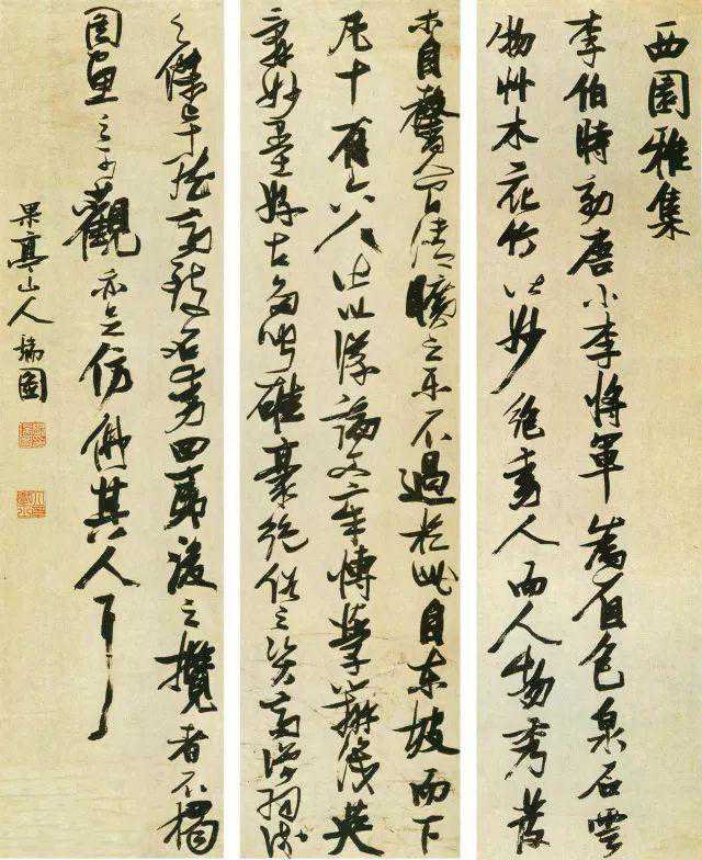 (1626年-1705年)号八大山人。其受欧阳询的影响很深,后学董其昌的行书,又转入黄庭坚的夸张开阔等,再寻魏晋人的书法气质,终于参用隶书笔法,形成自己独特的风格。