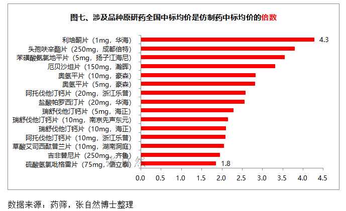 4、涉及品种原研药/仿制药中标均价倍数