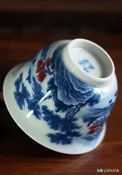 说到若深杯的特征,大概可以用“白、薄、小、浅”来形容。首先来和大家说说它那雪白洁净的瓷胎,能够更加突出地衬出茶色来,一点也不抢茶汤的风头;另外它质地轻薄、杯身小,使茶汤香气四溢的同时又能一饮而尽;最后是它的杯底平杯口大、圈足又深,端起茶杯时不易烫伤手。仔细观察,会看到它通透的蓝色青花图案,喝起茶来也令人赏心悦目。