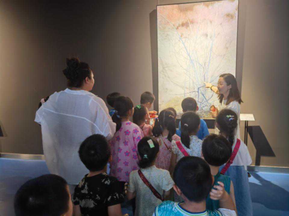 “不能摸,喜欢也只能看看哦,听老师讲。”一位教小朋友画画的老师正带着一群不满10岁的孩子围在一幅油画面前,她正生动讲解着自己对于文祯非先生画的理解,十几个小朋友津津有味地听着,宛若在上一场生动的博物馆之课。“讲课的是我们校长,我们经常会带孩子们来画展进行实地欣赏与讲课,很珍惜博物馆给的机会,小朋友们在这样的环境里才能真正体会到艺术的魅力。”同行的老师王女士对记者说道。