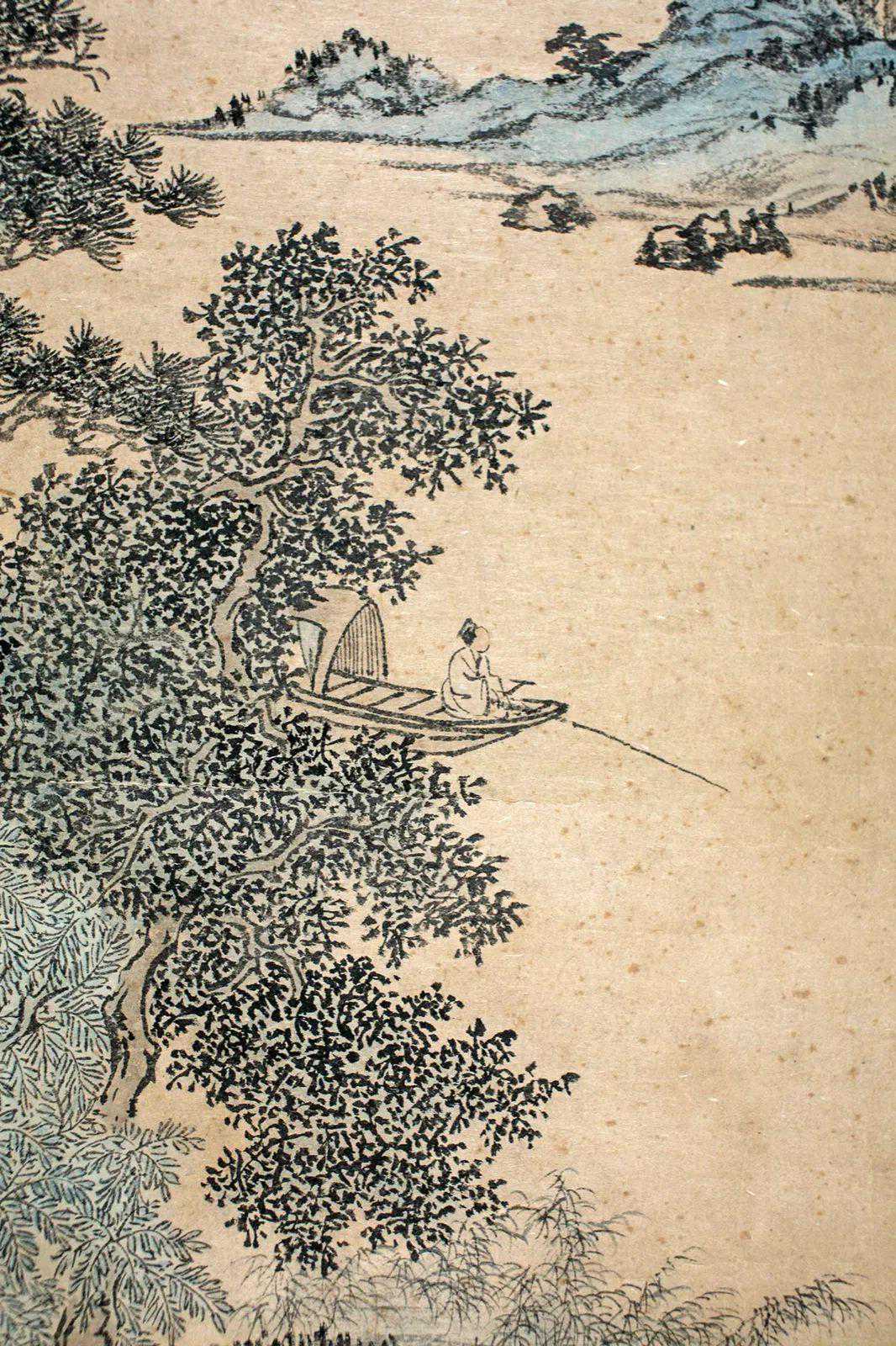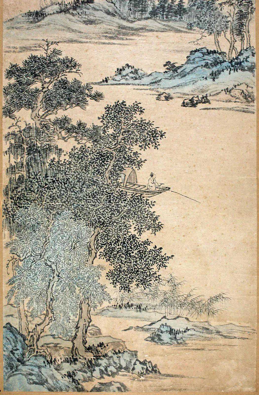 LOT3溥儒秋江垂钓设色纸本镜片