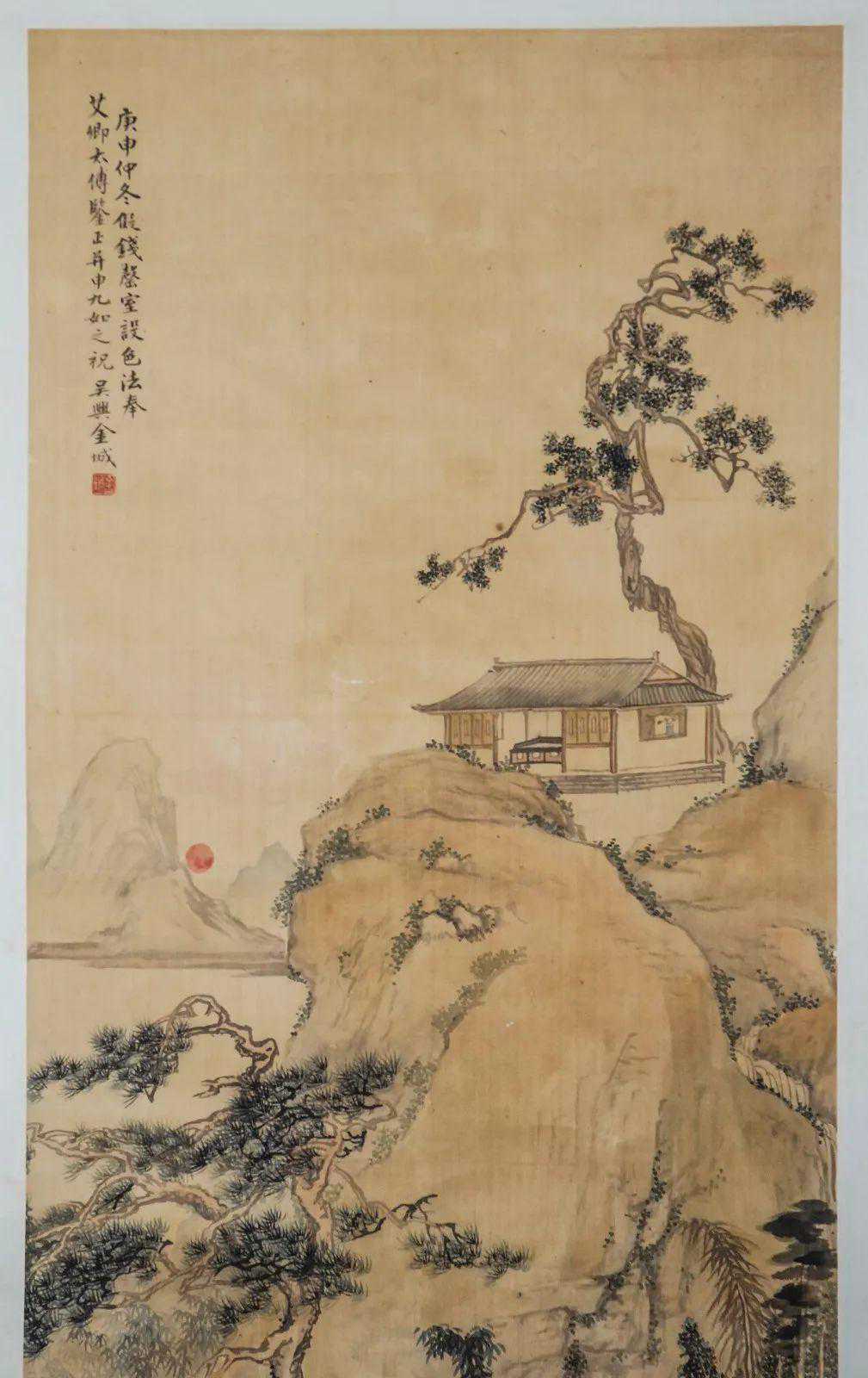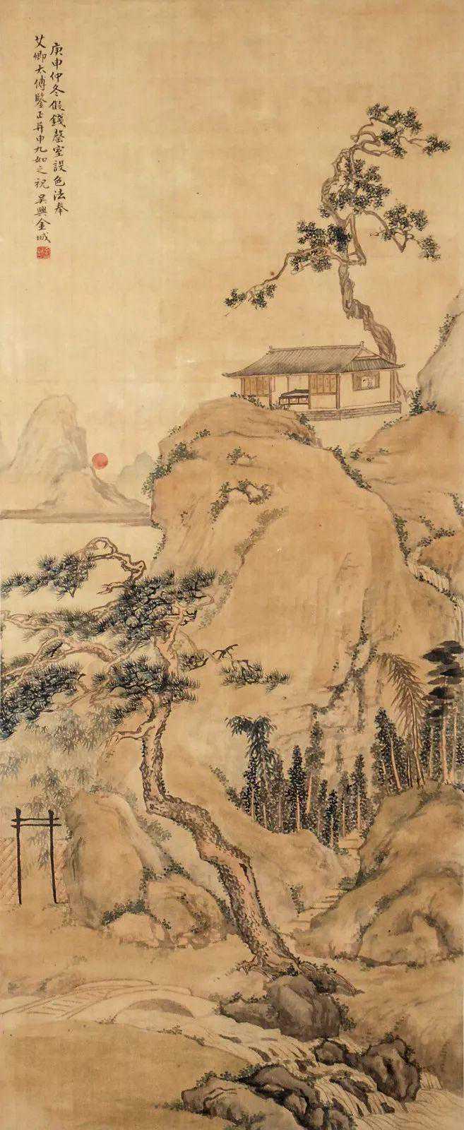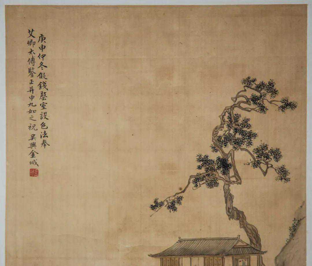 款识:庚申仲冬,儗钱罄室设色法。奉艾卿太傅鉴正,并申九如之祝。吴兴金城。