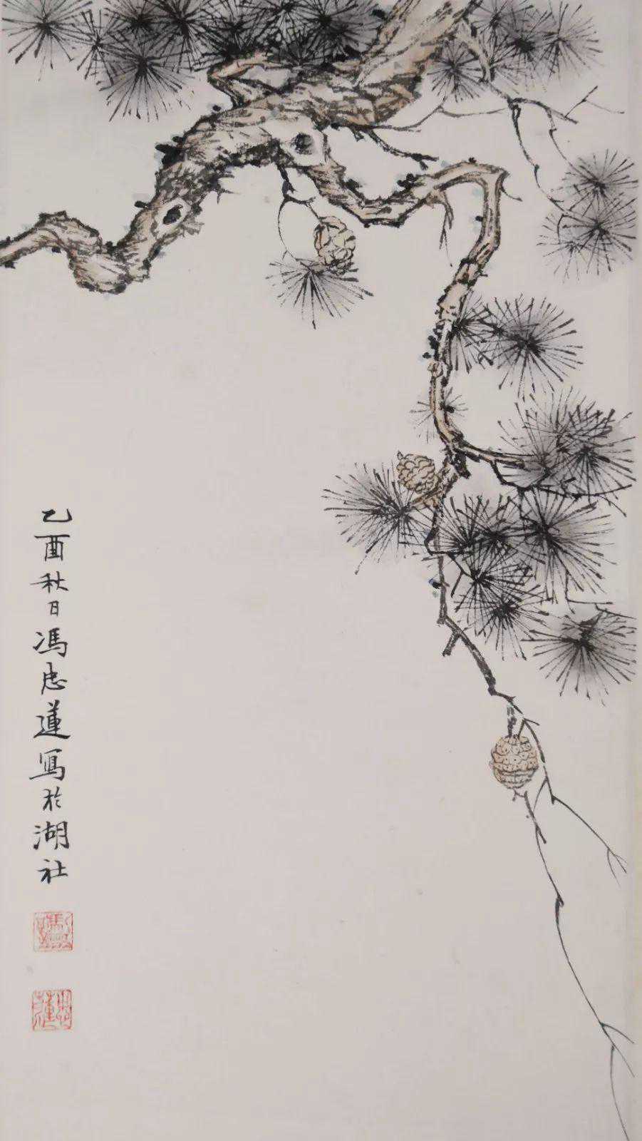 款识:乙酉秋日冯忠莲写于湖社。