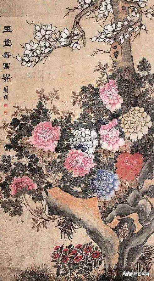 周闲是清代嘉光年间闻名遐迩的著名画家,当时与赵之谦等大家齐名,作画应接不暇,然而现在却寂寂无闻,不能不说是一个极大的遗憾。从此作来看,他的花卉作品的确如画史所称的精彩绝伦。画风近于瓯香馆没骨法,布局精当而具有动势,设色清净烂漫而又和谐统一,体现出画家高超的艺术表现力。