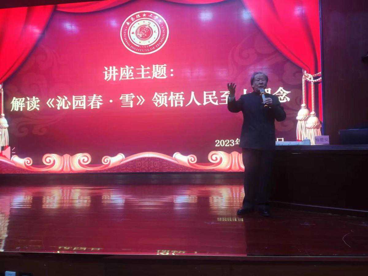 梅楚安教授从毛泽东同志为国家为人民不断奋斗的历史出发,详细阐述了毛泽东《沁园春·雪》创作到发表前后的历史,深刻解读了“数风流人物还看今朝”中的人民创造历史的深刻寓意,揭示了毛泽东诗句中“人民至上”的理念。梅楚安教授的讲座声情并茂,让师生领略了毛泽东诗词的磅礴气势,深刻感受到了毛泽东同志的人民情怀,赢得了现场师生的热烈掌声。