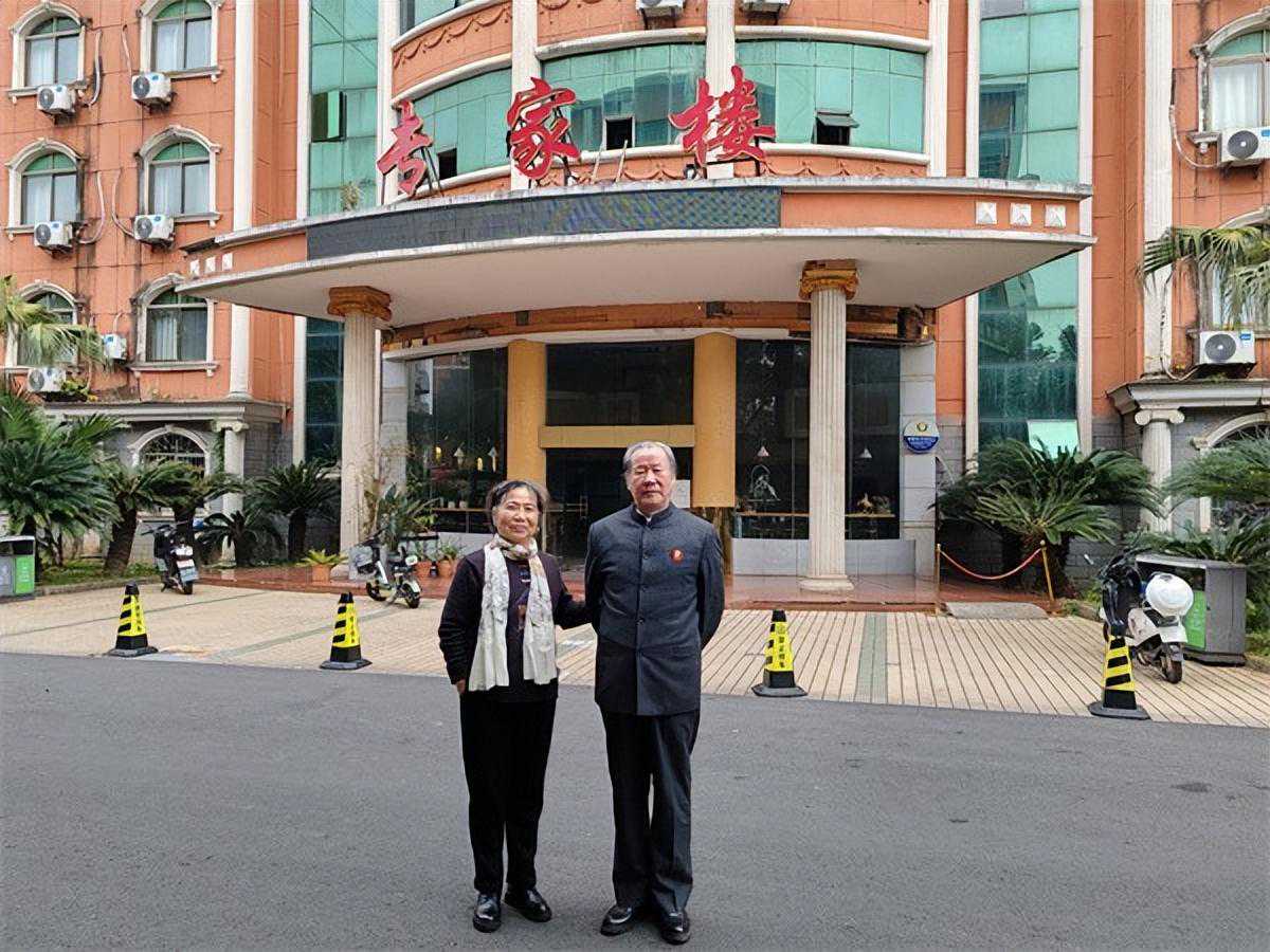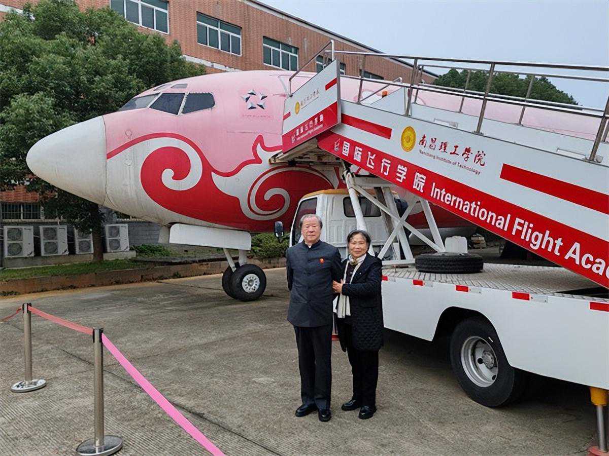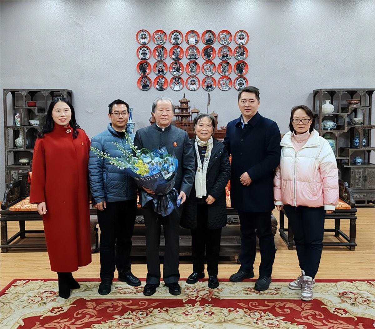 ▲南昌理工学院马列学院张进院长(右二)、刘晓玲副院长(左一)、刘剑松副院长(左二)、院长助理胡硕利向梅楚安教授夫妇献花