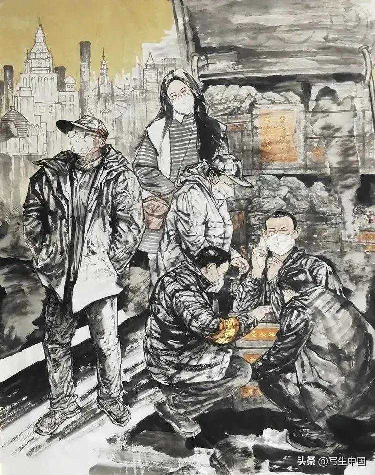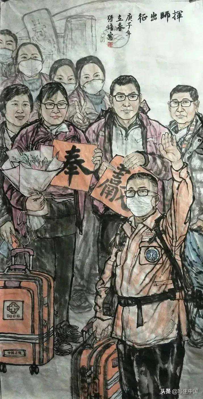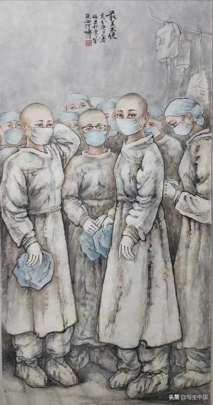 《抗疫逆行者》中国画文麒