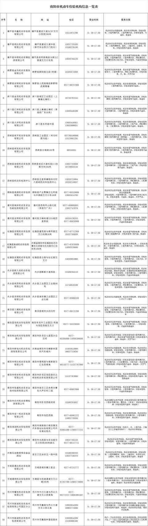 根据公安部“放管服”便民服务精神,为方便广大车主就近检车、少跑路,节省时间,提高效益,现将南阳市机动车检验机构相关信息向社会公布,供广大车主选择您满意的机动车检验机构(南阳市机动车检验机构信息已在高德地图上标注,欢迎大家查询)