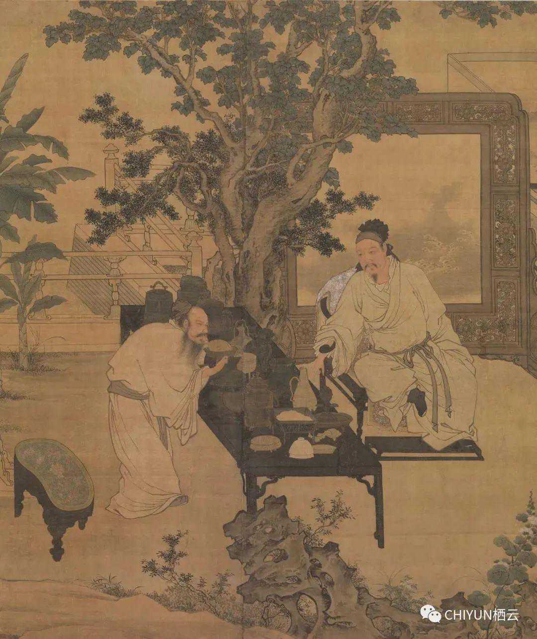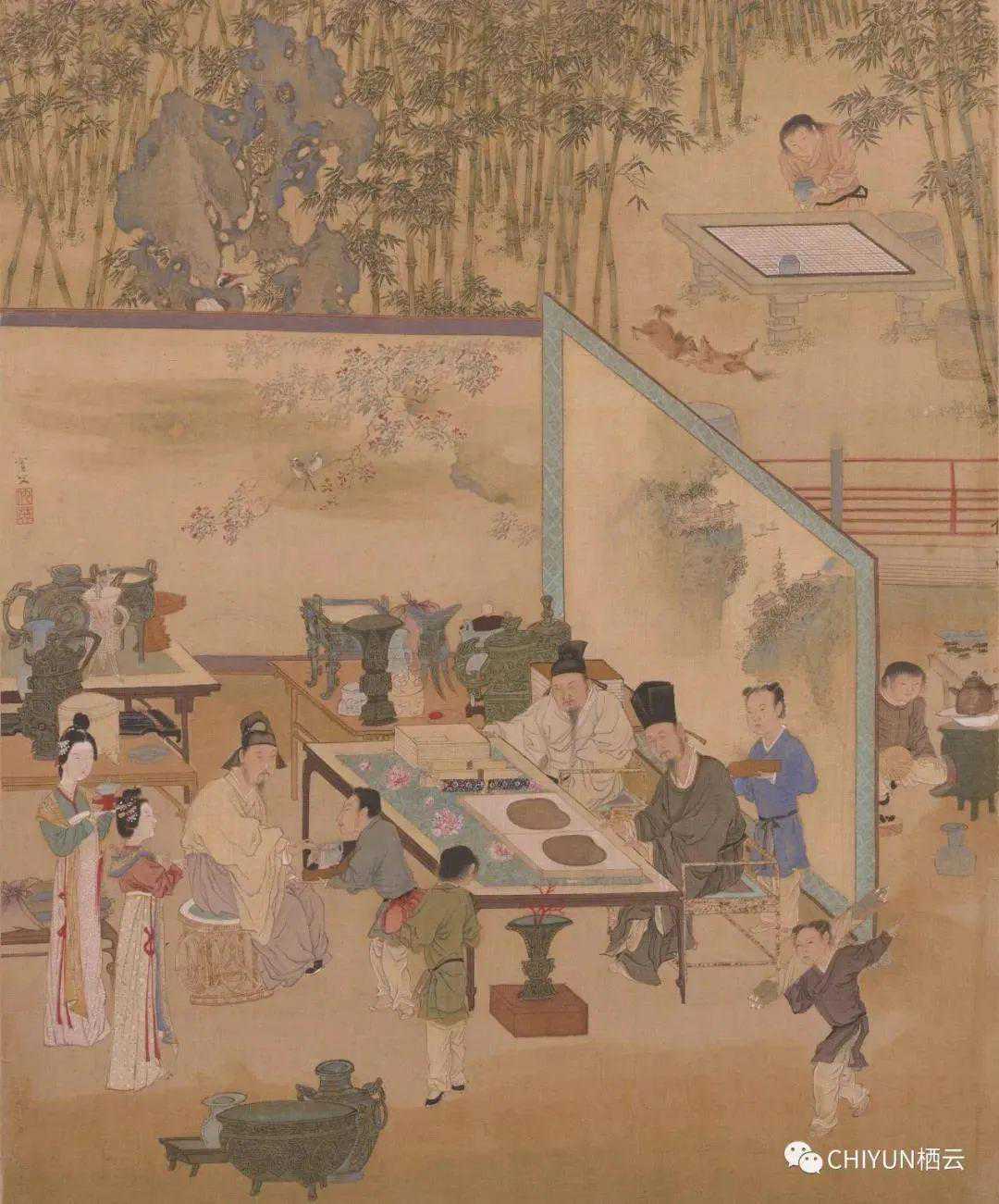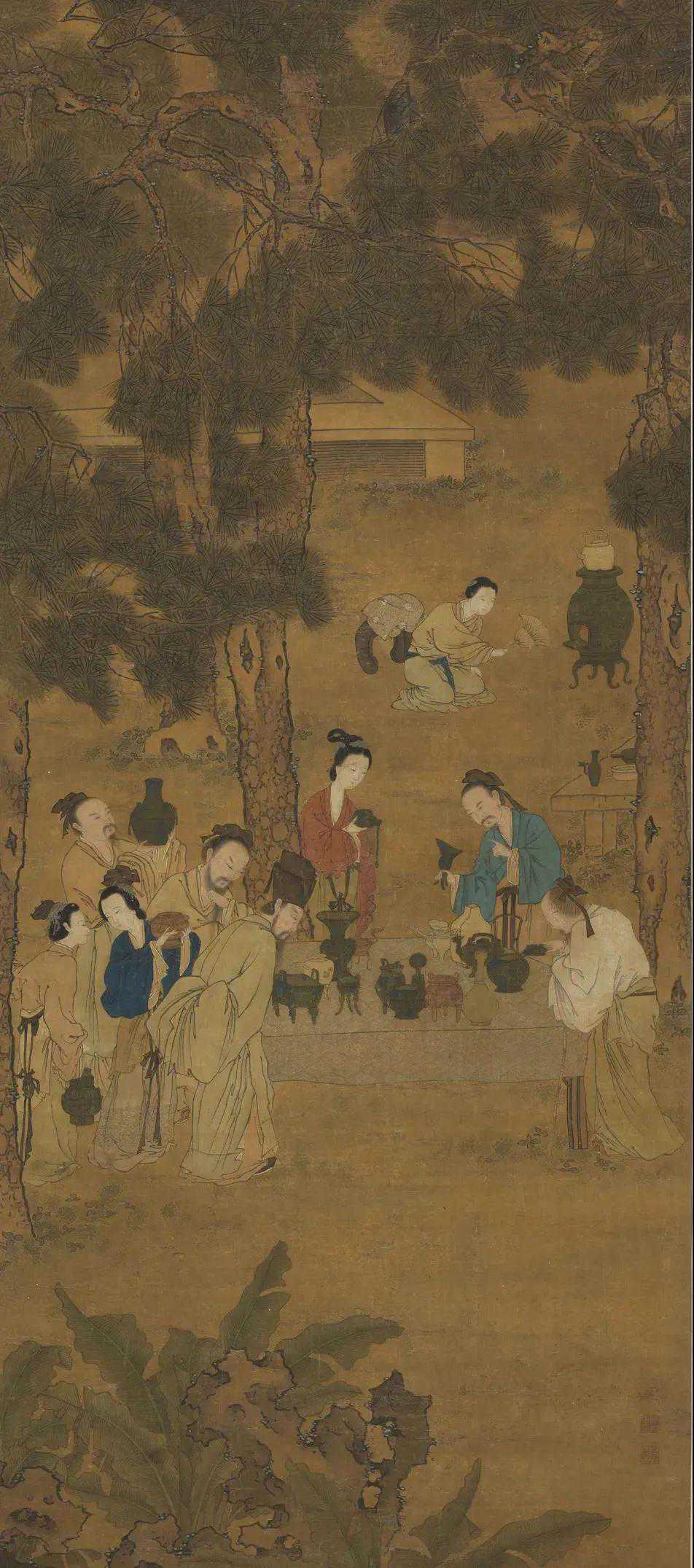 ·明杜堇《玩古图》(局部)绢本设色126.1×187cm台北“故宫博物院”藏