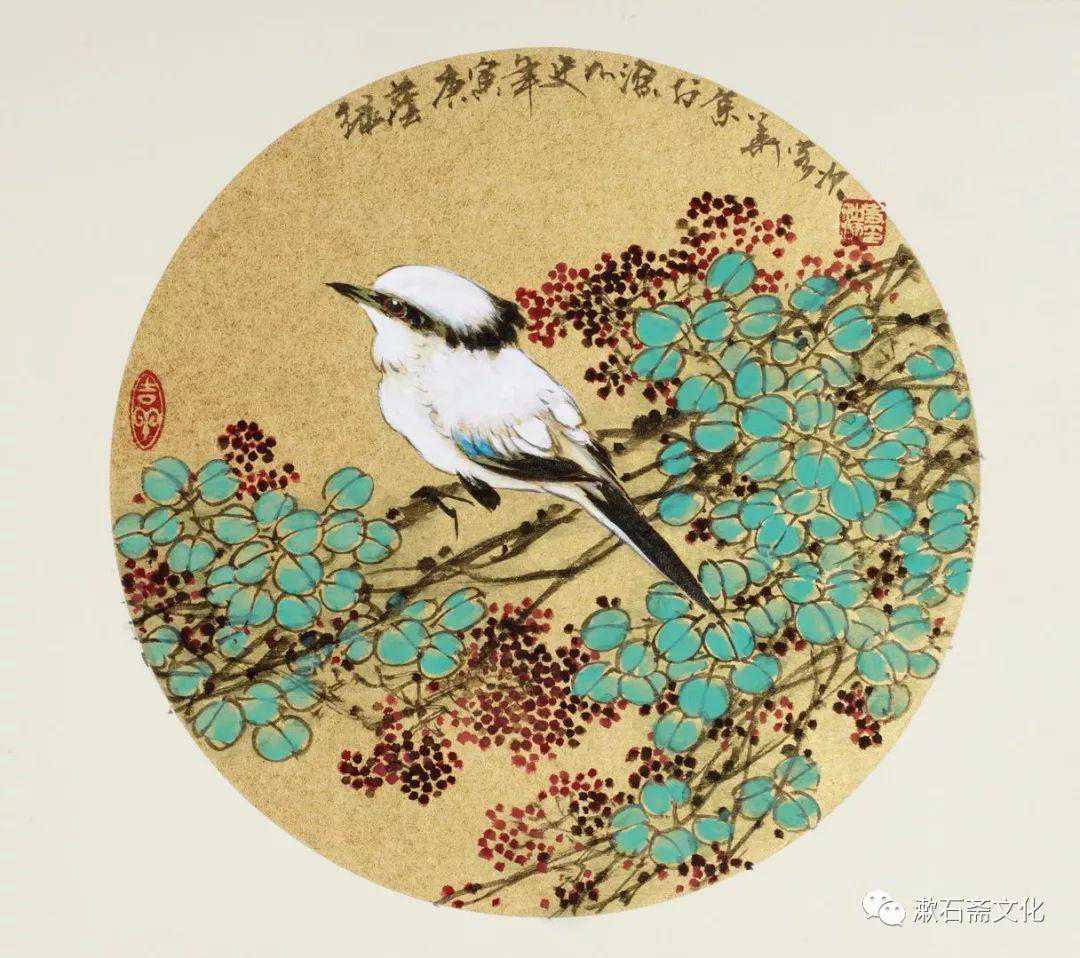 静观画面,这些停落在枝头的小鸟眼中的光芒反映出“机敏”,仿佛均有声息且欲跳跃移动,这是因为常年观察、写生,已将禽鸟神态和翎下的骨骼运动规律熟悉于心。“不变化物象原态、遵循自然规律”也是史如源先生对自然最忠诚的热爱,甚至是为表达这份热爱而进行创作时,坚持运用的创作风格。史如源先生的小写意花鸟画始终强调物象神态、造型逼真,绘画技法将物象刻画的淋漓尽致——细观画面,可发现禽鸟柔软细碎的羽毛被风吹得凌乱,果实也摇摇欲坠,观者被带入画中情景的同时也可推断出,能够如此自然地在这细微之处表现出动态感,这离不开史如源先生常年在写生过程中研习“不规则性动态速写”、以及对物象的观察入微。