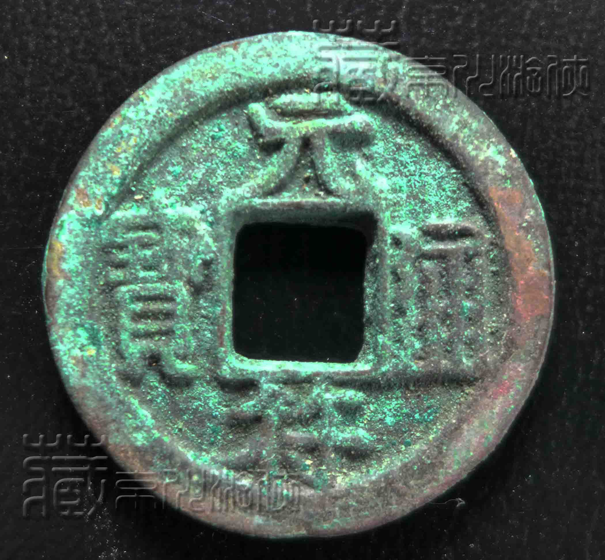 次观铸相。辗转品鉴,可见本品铸制规整有加,虽有锈裹,然难掩其精。其直径约为24.64毫米,重约6.83克,铸体相对厚重,小平形制略偏大。其铸相显示,方正圆矩,坦平地章,穿轮更是干干净净。复观字廓,中宽缘(面穿廓窄瘦,背穿廓宽肥),轮廓分明,深竣挺拔,鼓凸自然有度,恰到好处。毫无疑问,观铸识体,诸般特征,彰显铁母本色,正是官炉铸制之隶书直读铁母之钱,无异无邪,其门再开。