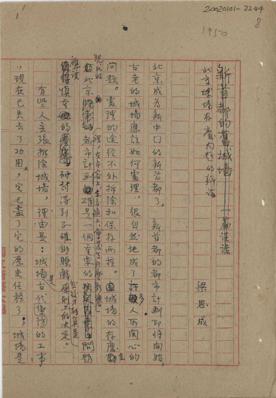 梁思成《北京城墙存废问题的辩论》(手稿)