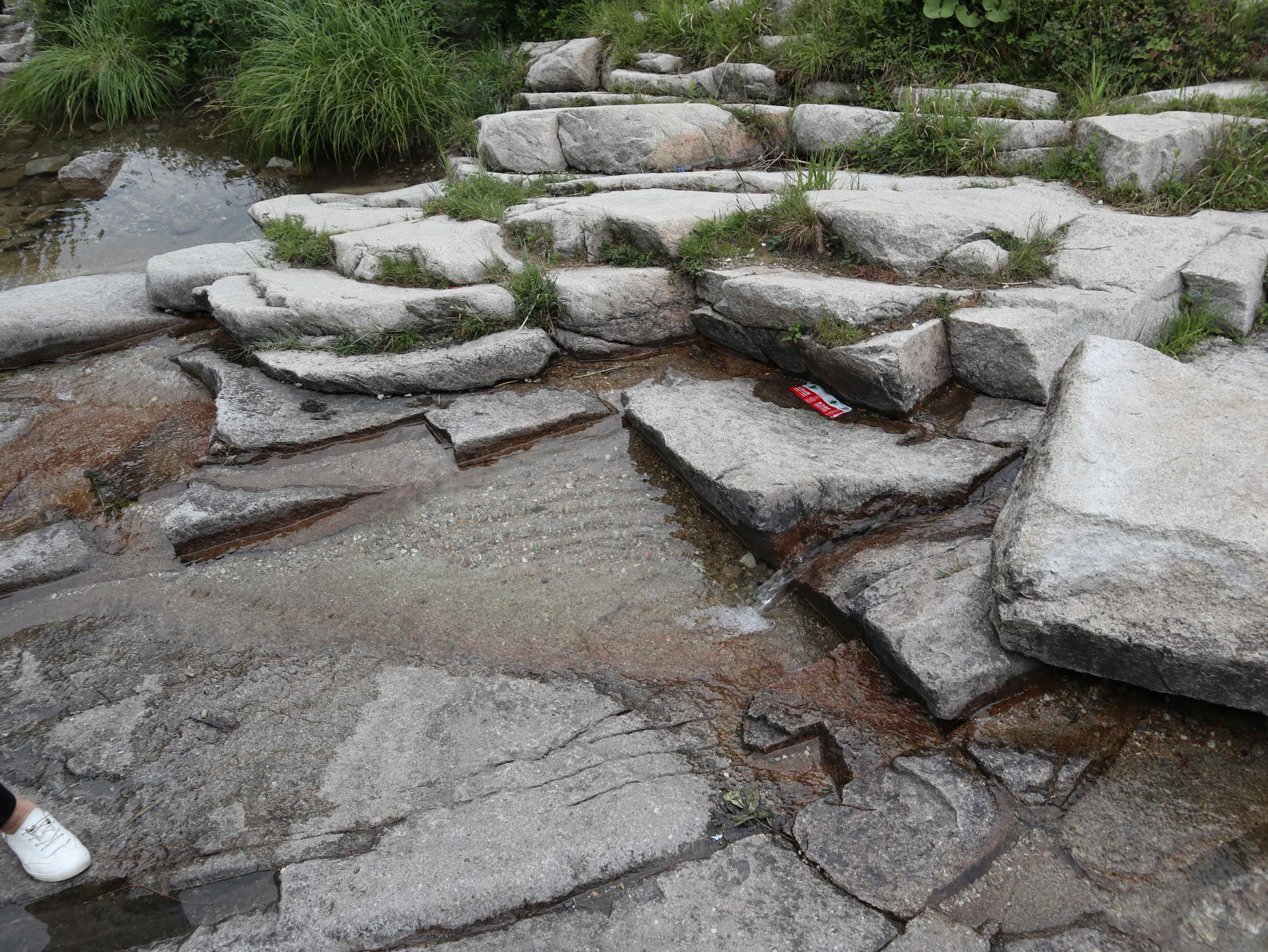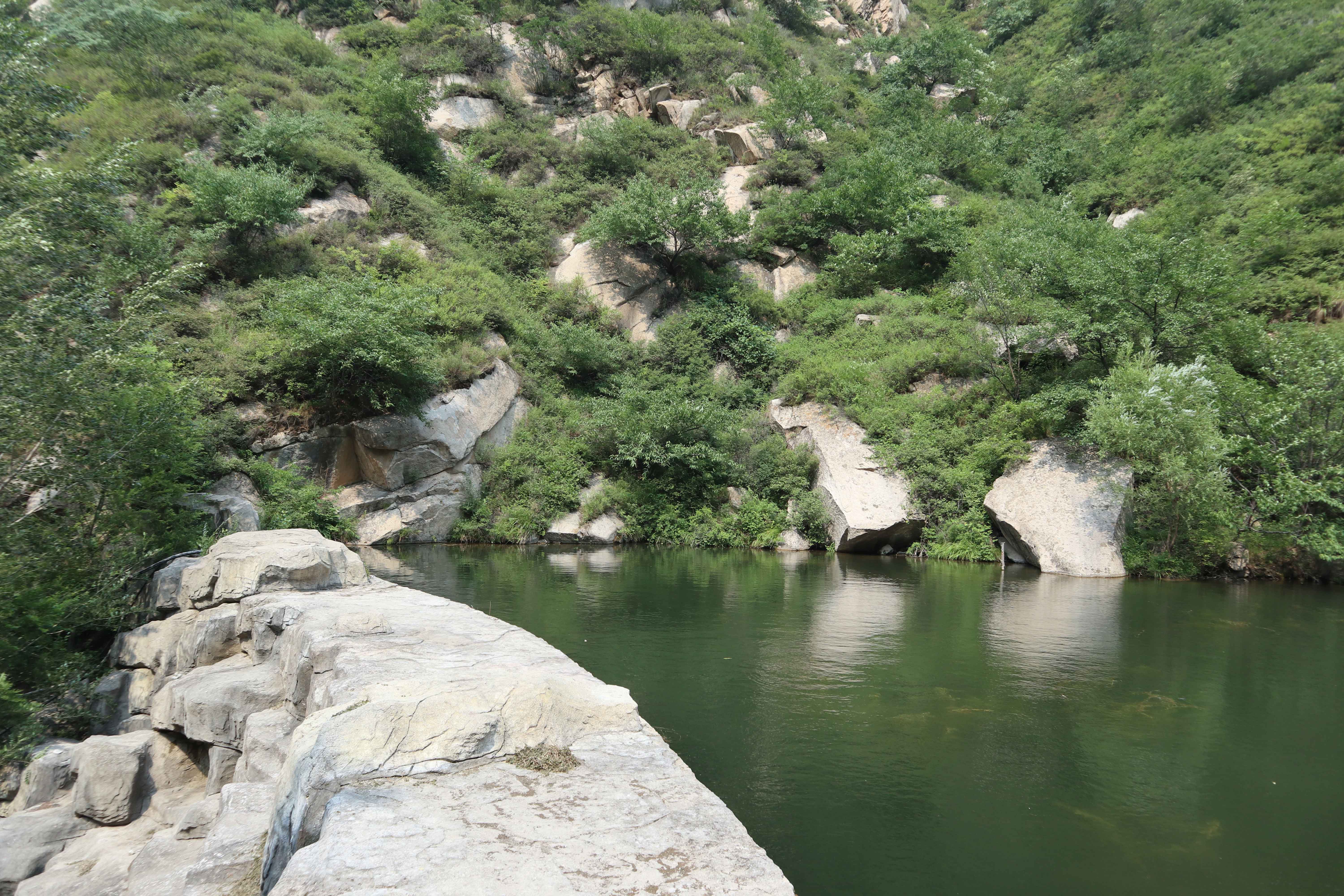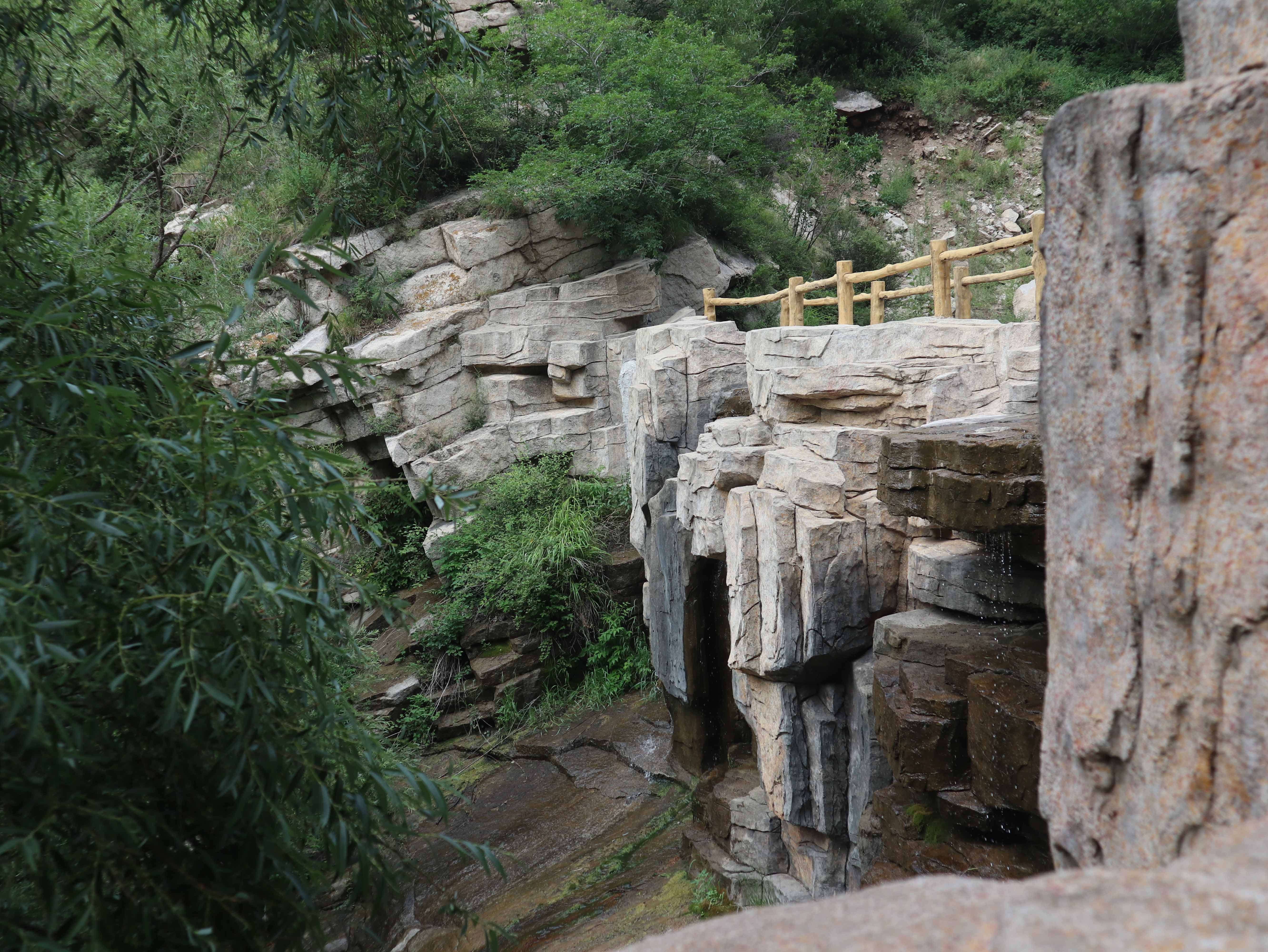 因为上面施工截留,这里本来都是瀑布,看来这段时间是看不成了。如果施工完毕,一定很美,更凉爽。