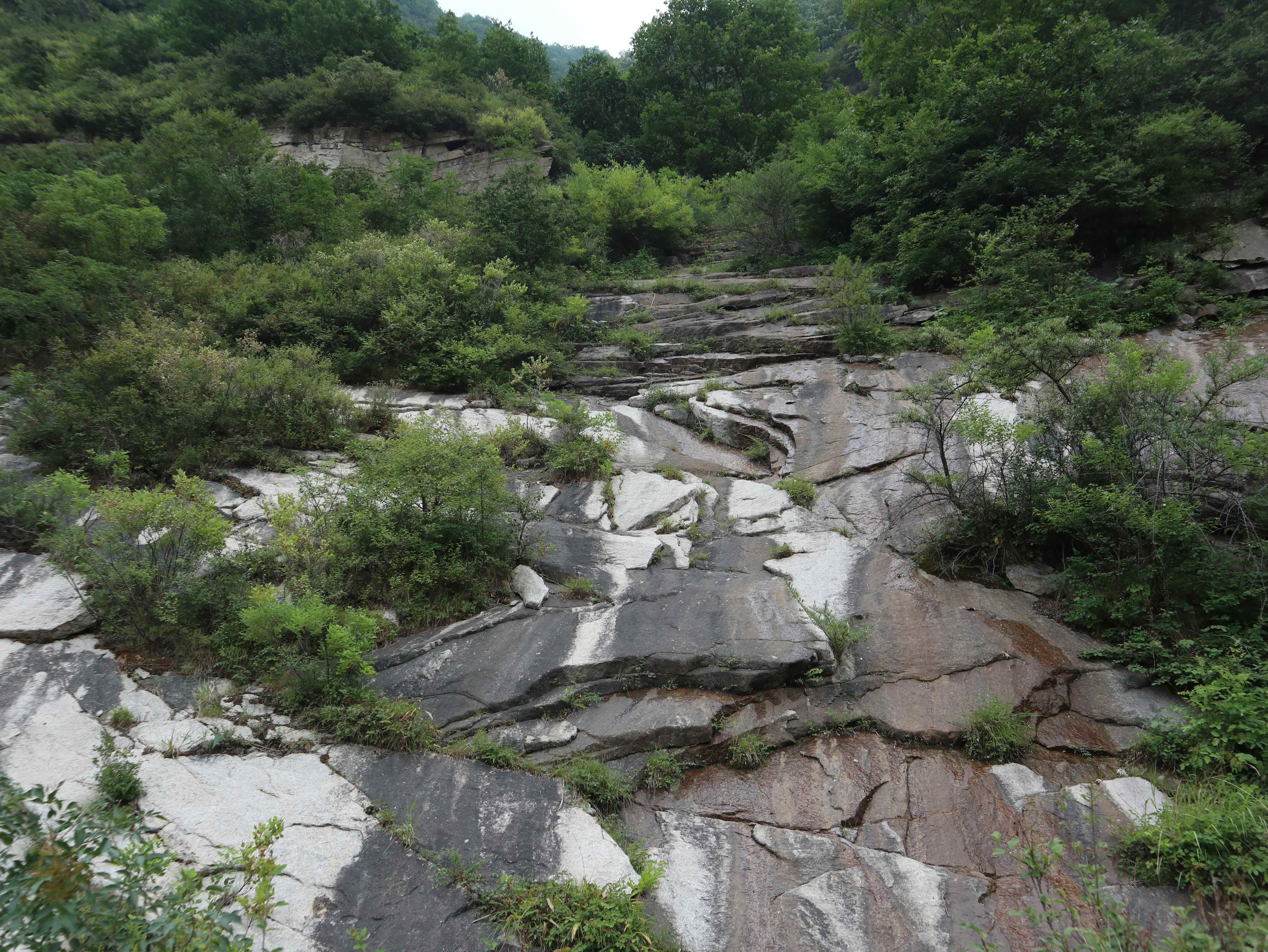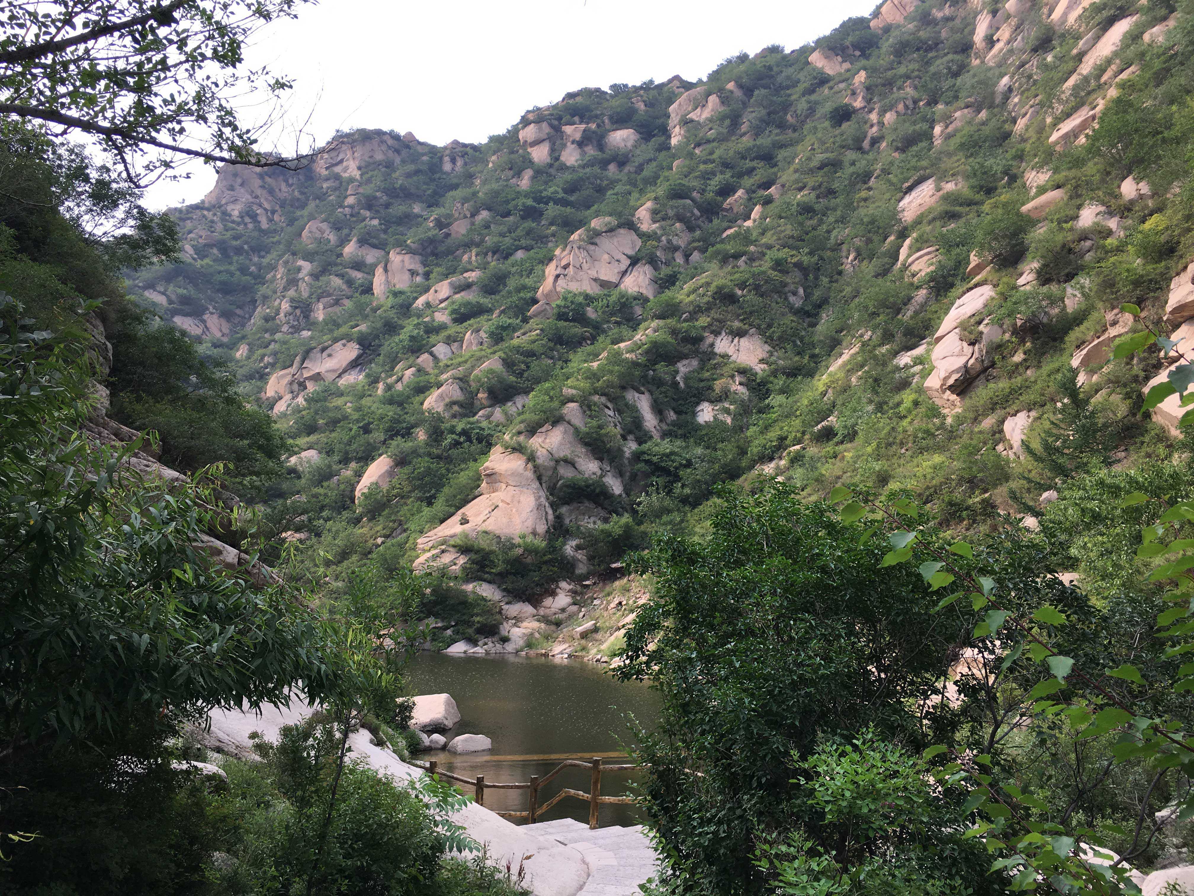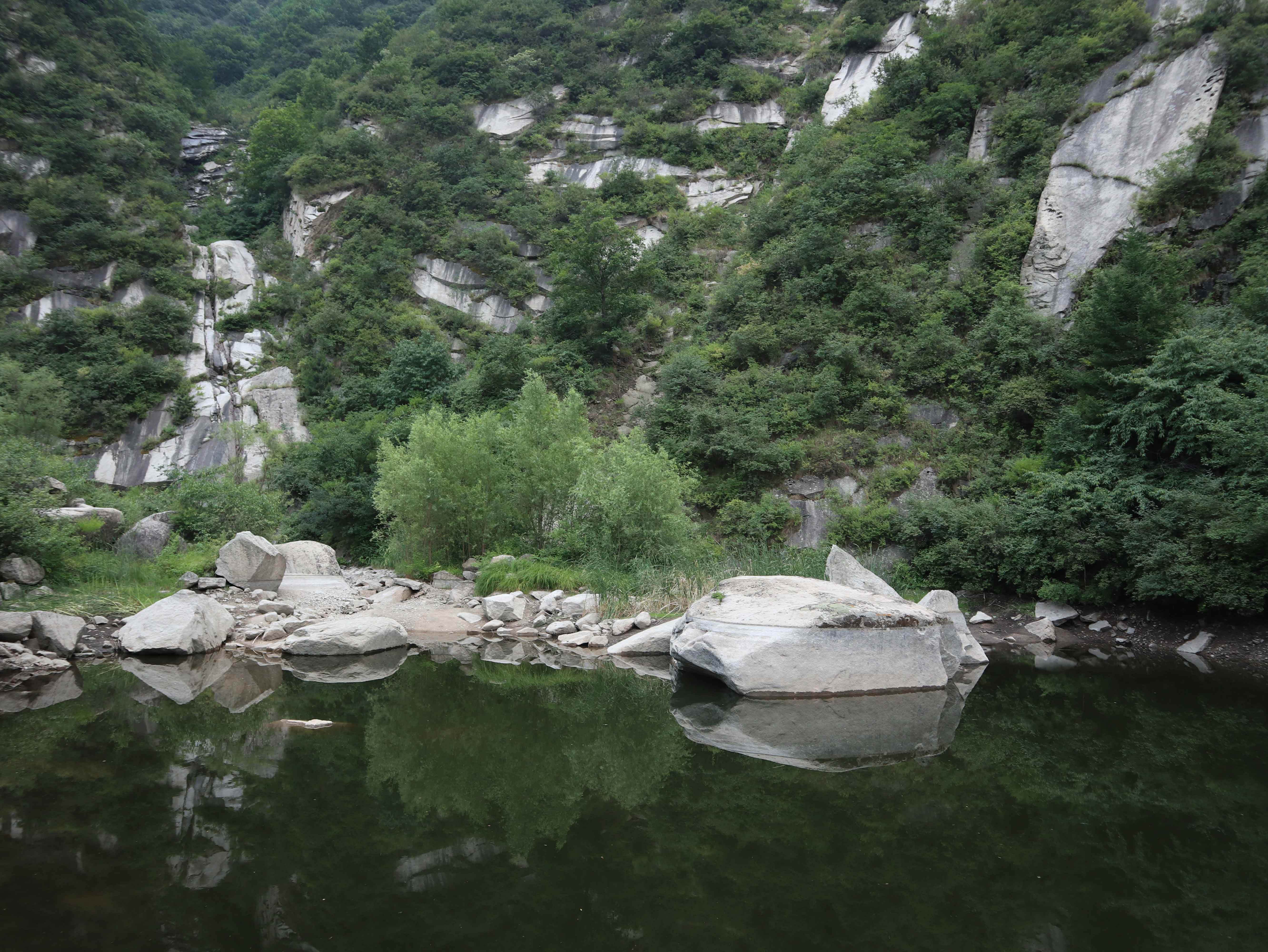 因为上面施工截留,这里本来都是瀑布,看来这段时间是看不成了。如果施工完毕,一定很美,更凉爽。
