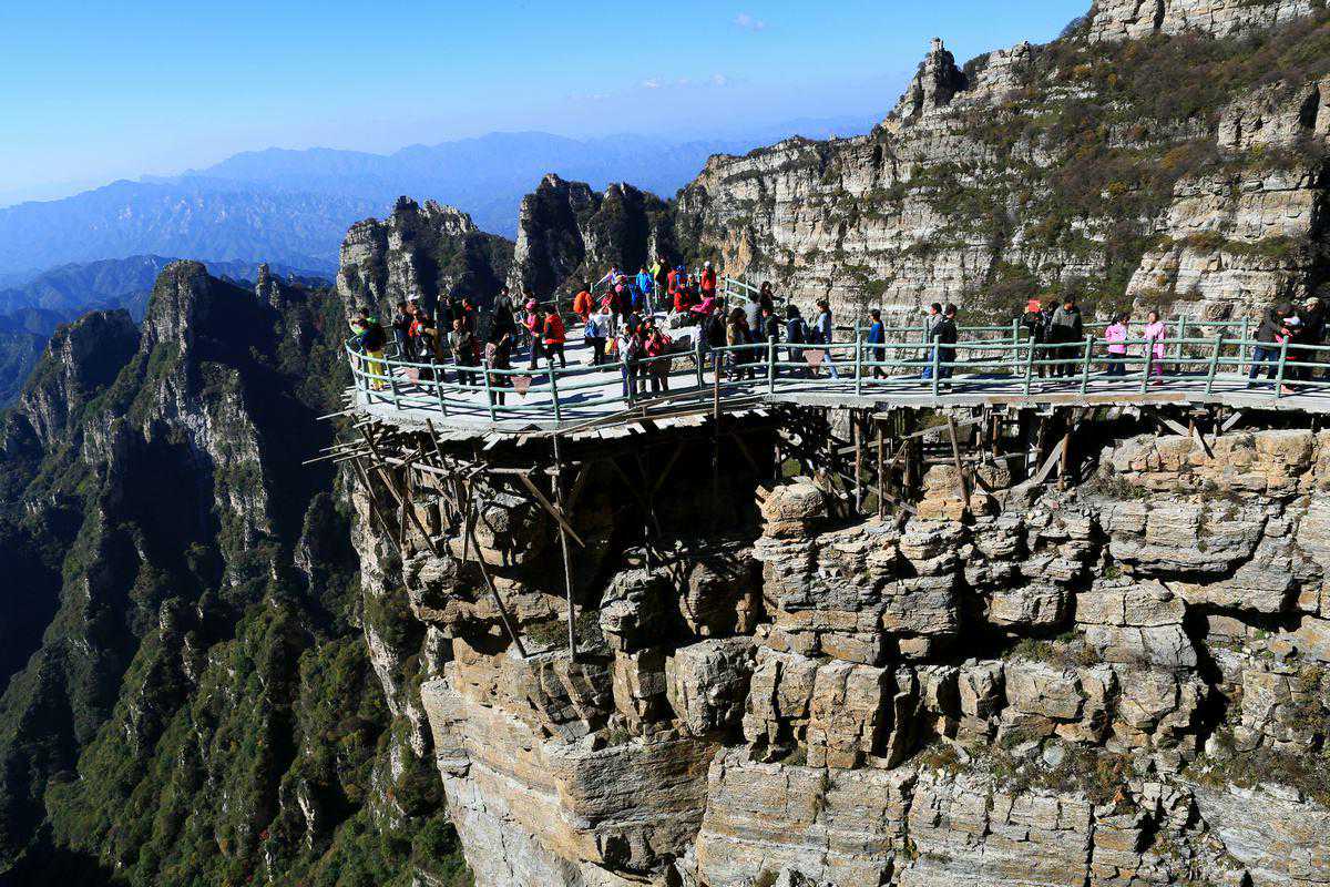 之所以选择这个景区而不推荐白石山还有另一个原因,就是上面这个照片,我看这么多人,就几根铁棍支撑,说心理话,我是真心的不想用自己生命玩,高山美景我看的很多,真不缺这一个。还有一个就是,白石山没水,一直爬山,索性还是算了。玻璃栈道可以去石家庄新建的一个景区好像叫红崖谷,那个景区里面还是有点感觉,玻璃栈道更惊险刺激。