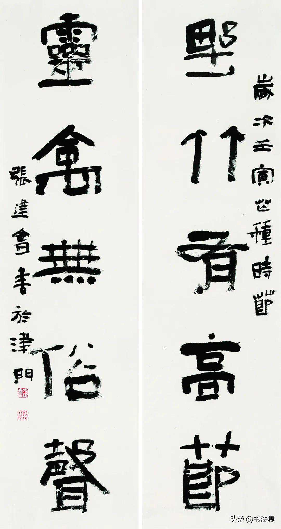 释文:野竹有高节;灵禽无俗声。岁次壬寅芒种时节,张建会书于津门。