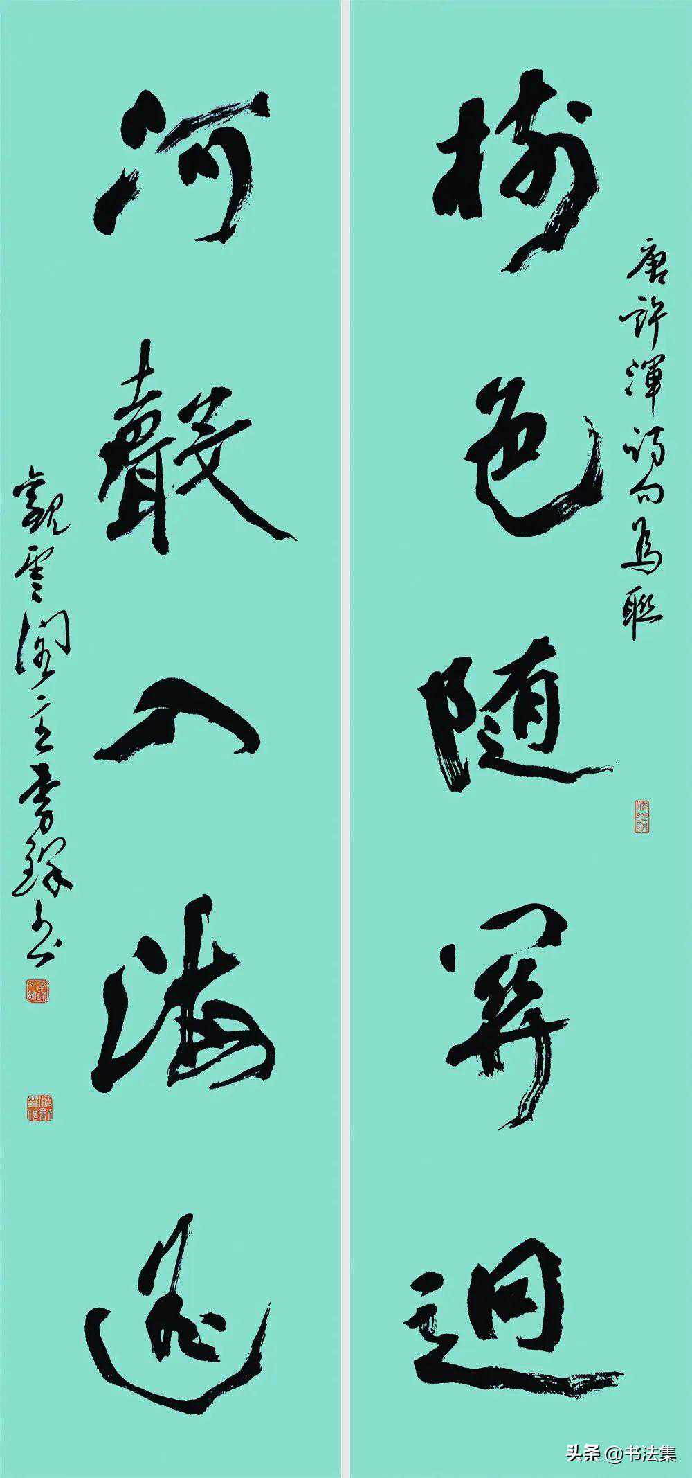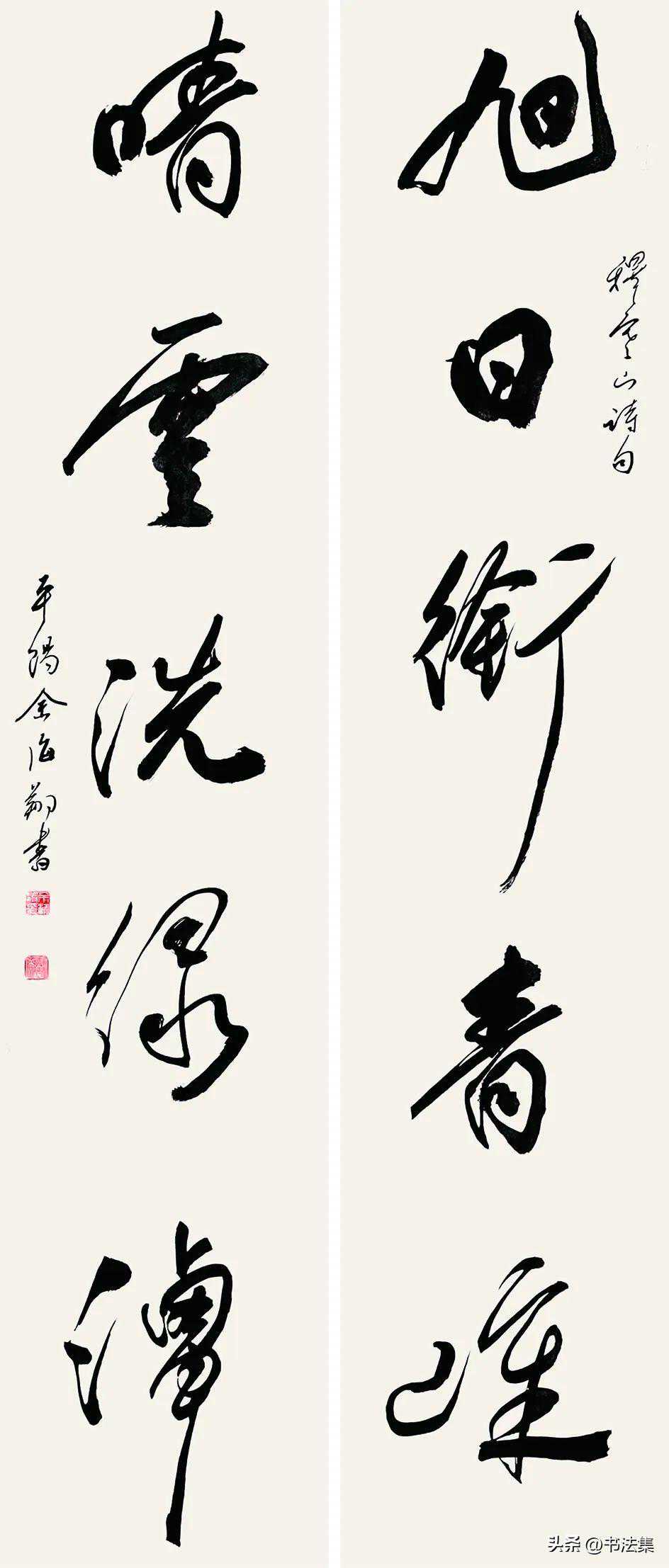余海翔旭日晴云五言联150×38cm×2纸本2023年