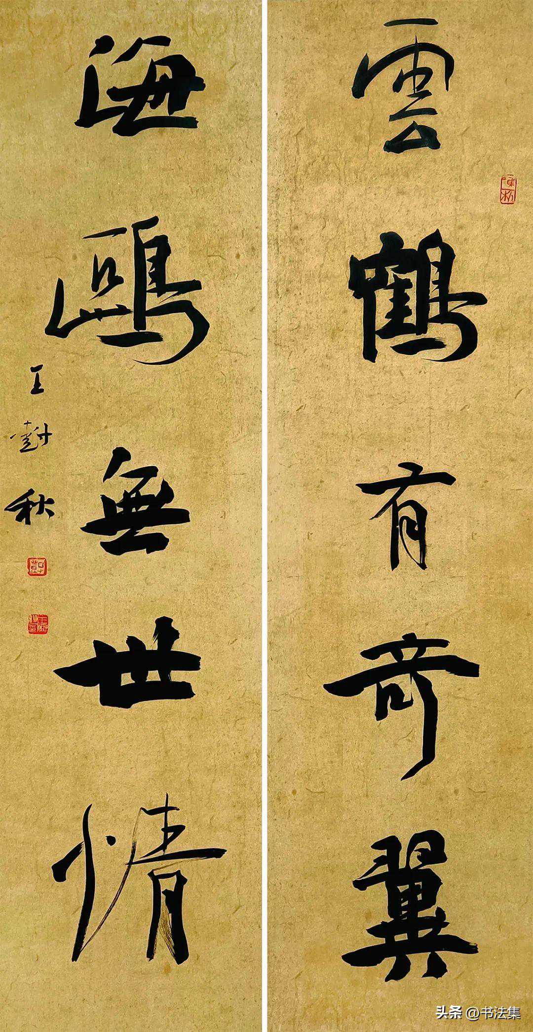 王树秋云鹤海鸥五言联135×35cm×2纸本2022年