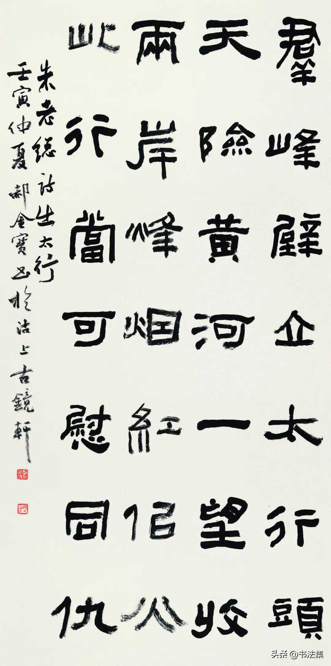 释文:群峰壁立太行头,天险黄河一望收。两岸烽烟红似火,此行当可慰同仇。朱老总诗《出太行》。壬寅仲夏,郝金宝书于沽上古镜轩。