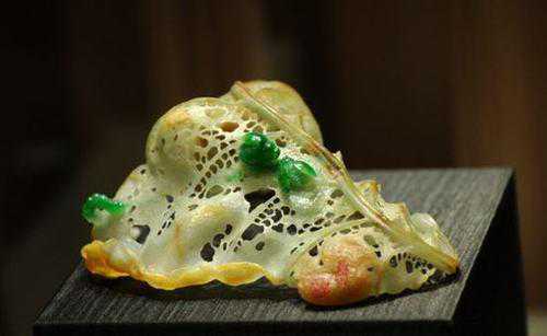 第一件叫“一露甘甜”是慈禧太后最喜欢的一件作品,现藏于北京故宫博物馆,这件冰种带彩的翡翠全部镂空雕刻,想想那个时候还是脚踩粗劣工具制作,能做出这样的作品那一定是顶级师傅了。
