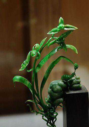第九件“岁月惊喜”,兰花看来在那个年代比较受欢迎,不愧为四君子之一它的气度从来都是不受任何红尘俗世之扰,洁净也高雅清艳却不俗,这件满绿翡翠如此奢华之雕现在都不敢这样做了,太浪费材料与太考验人心。