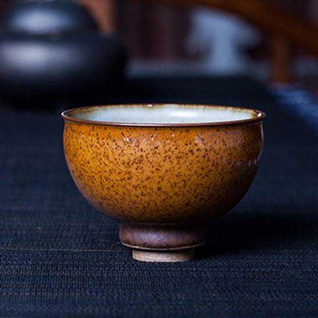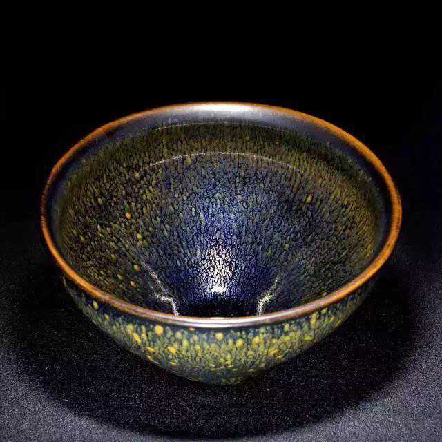 建盏的建窑黑釉是一种析晶釉,属于含铁量较高的石灰釉,因此,具备烧成黑釉的基本条件;同时,石灰釉黏性强,其最大的特点就是在高温中容易流动,所以,建盏外壁底部往往有挂釉现象,而器物口沿釉层较薄,呈褐红色,有的近似芒口。