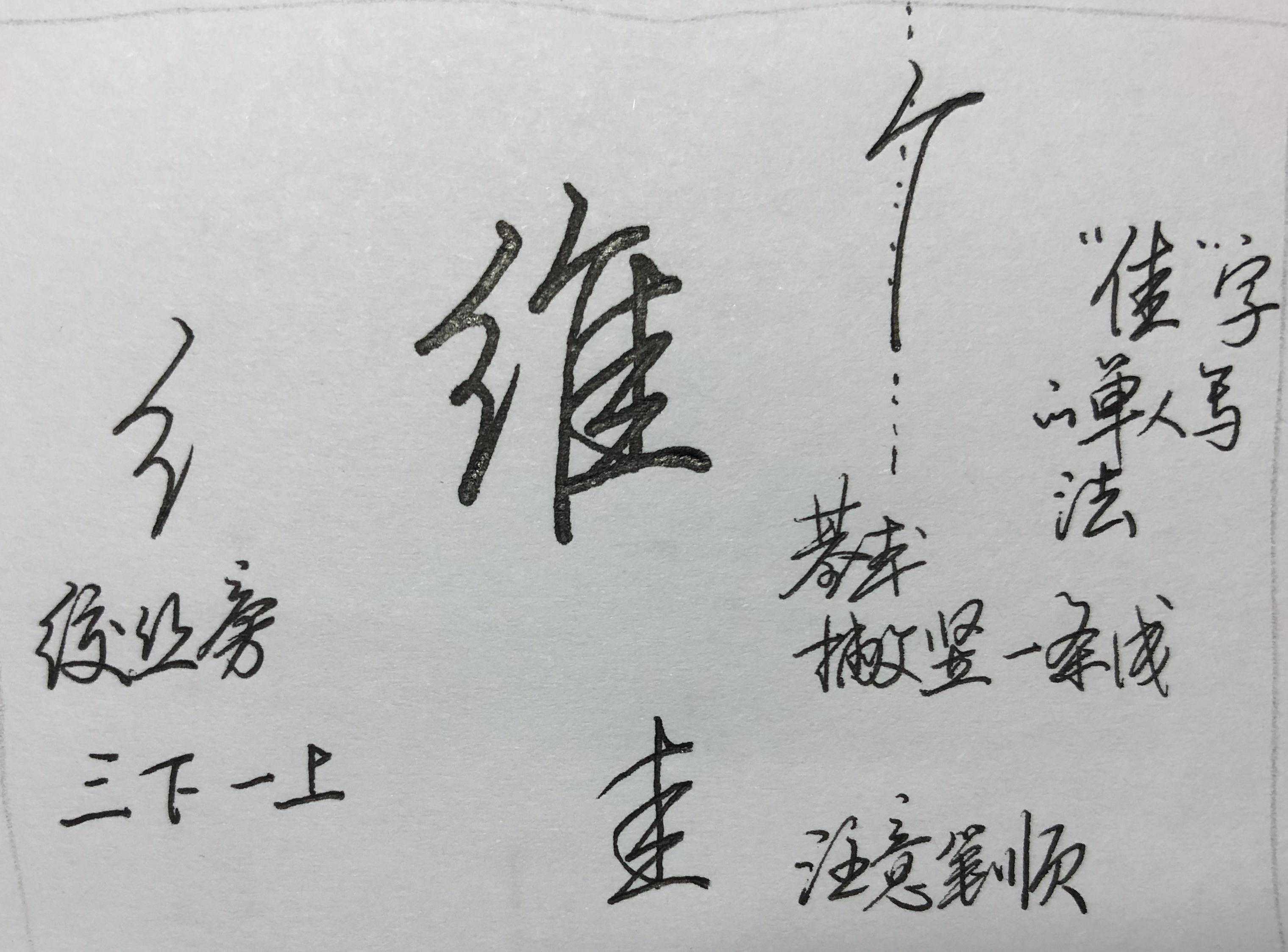 1、“隹”的一撇和一竖部分,撇的起笔和竖画在一条线上为宜,这样不会离得太宽。
