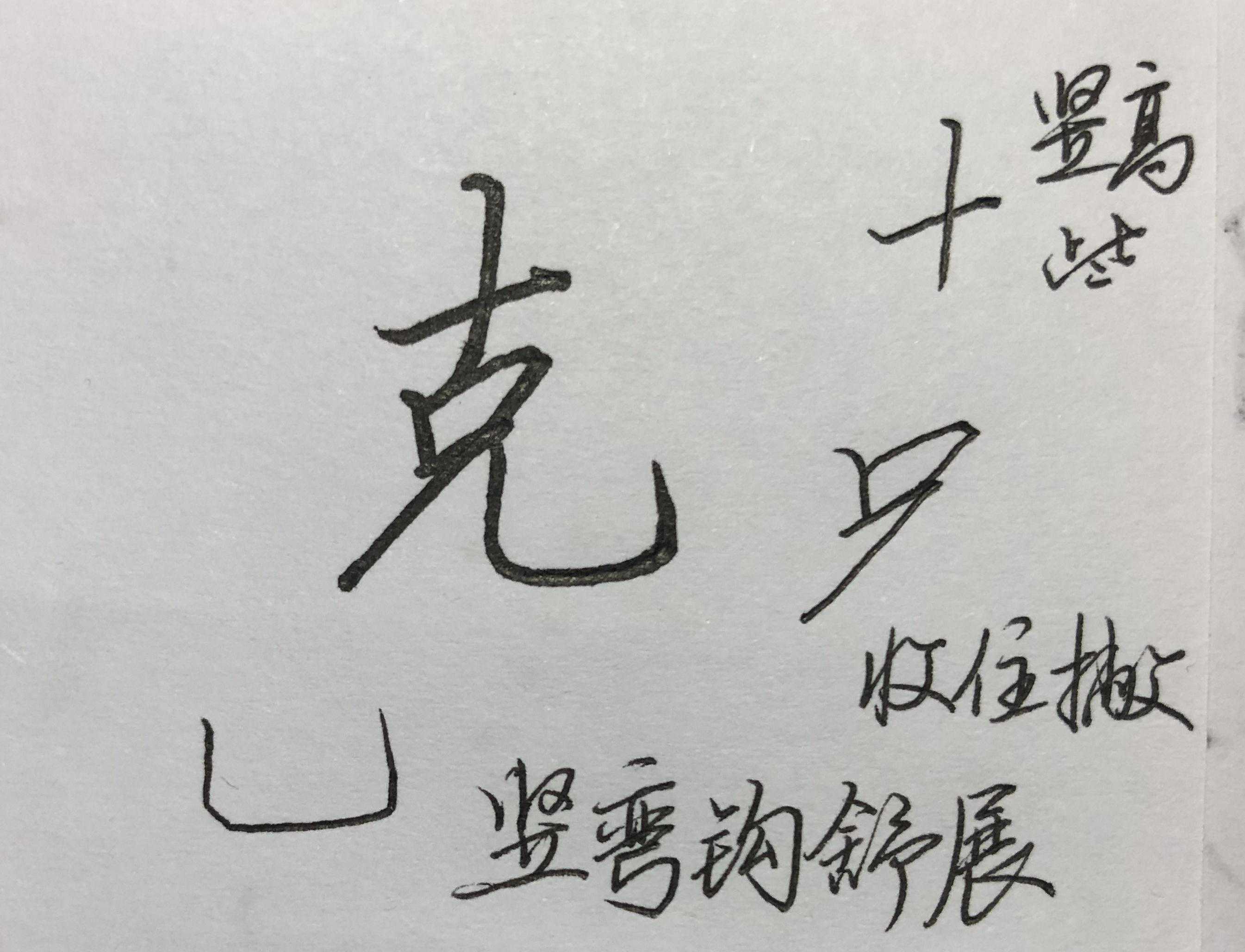 2、两个竖画,应该注意方向基本是一个往右倾,一个往左倾。