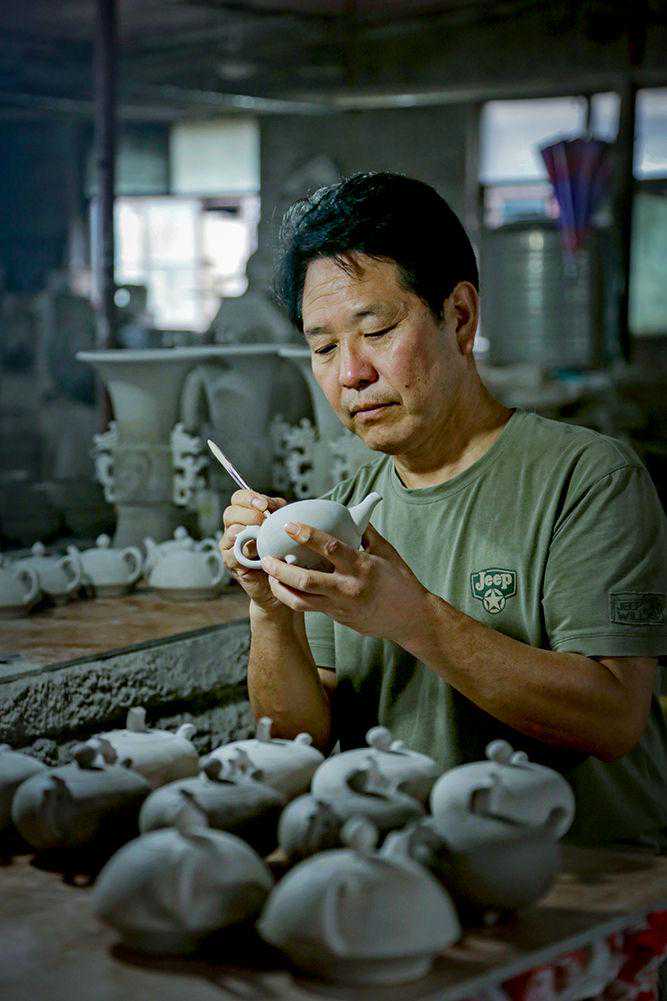 “陶瓷茶具并不是一个新鲜的事物,在南方不少瓷区,陶瓷茶具的历史极为悠久,如宜兴紫砂,就曾诞生过很多经典器型,钧瓷茶具则起步较晚。”翟群说,在最初制作钧瓷壶时,他曾广泛向南方的壶艺学习,学习他们的造型和工艺,进而将钧瓷多变的釉色引入其中。“当时我就认为,只要我们造型的多样性和工艺的精细化达到南方瓷区的水准,再加上钧瓷无双的釉色,一定能够为钧瓷的发展带来更加广阔的空间。”