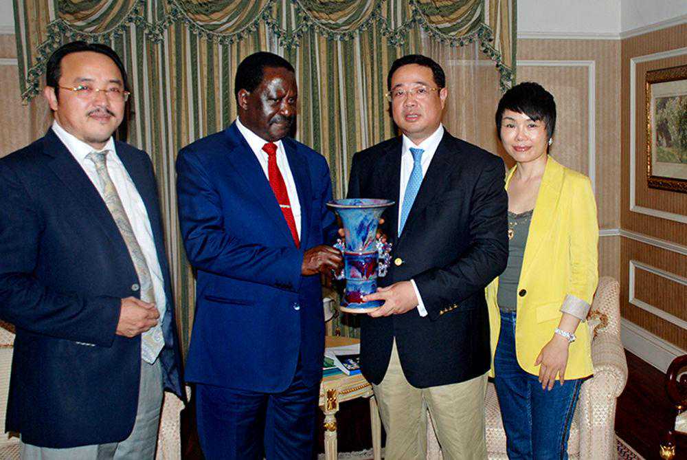 肯尼亚总理奥廷加收藏华鼎钧窑翟群大师钧瓷作品“中华尊”。