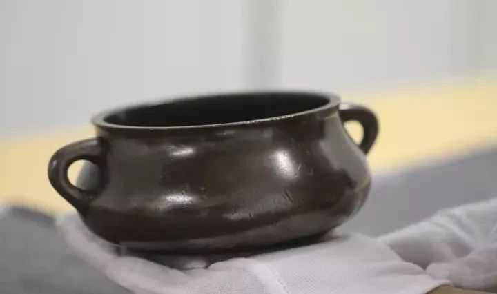 口沿一周起线,平沿内倾,恰如明式家具案面边抹均匀的“栏水线”,口沿下方束腰起线作双弦纹,经典的明式家具也有不少类似的在束腰上的处理。