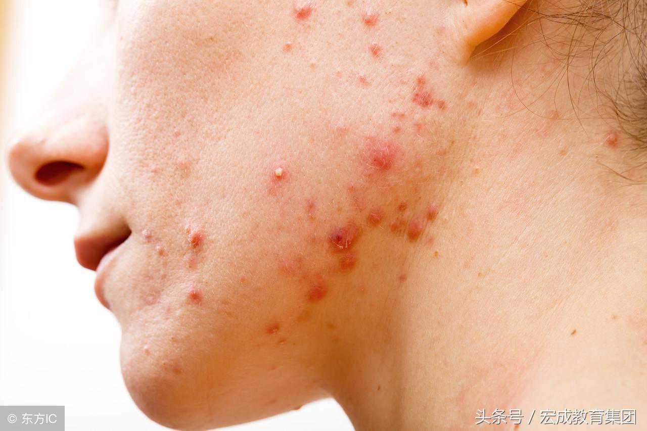 寻常性痤疮好发于前额、双颊、胸背、及肩部。初为粟粒大小毛囊性丘疹,日久顶端形成角栓,进而发展为脓疱,结节,感染伴有疼痛。