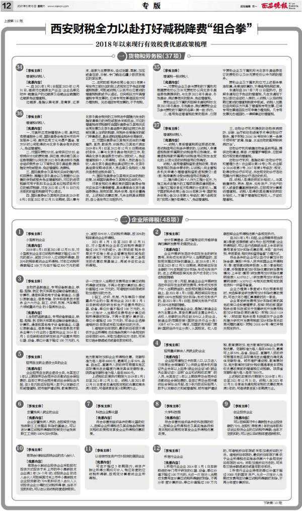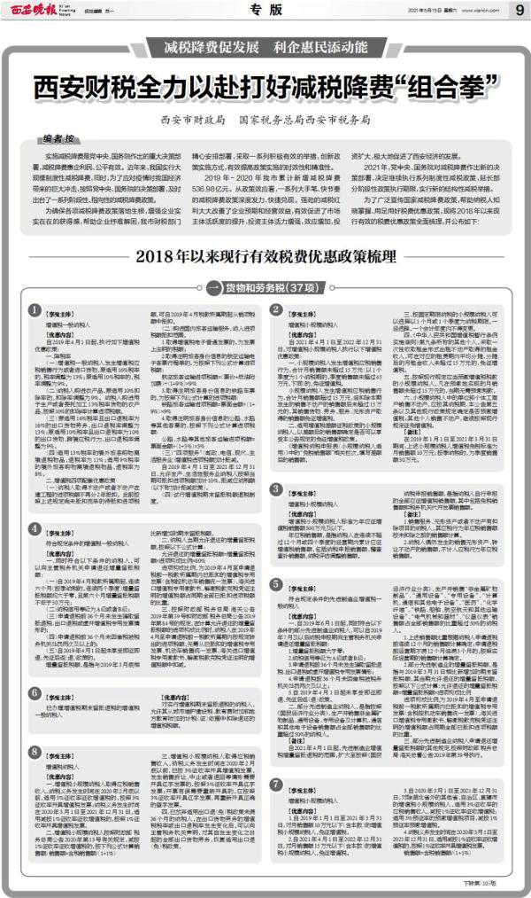 2021年,党中央、国务院对减税降费作出新的决策部署,决定继续执行系列制度性减税政策,延长部分阶段性政策执行期限,实行新的结构性减税举措。