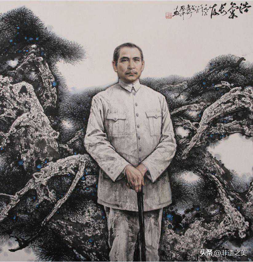 ▲伍启中《浩气长存——孙中山》136×136cm1986年国画获第一届中国画展优秀奖
