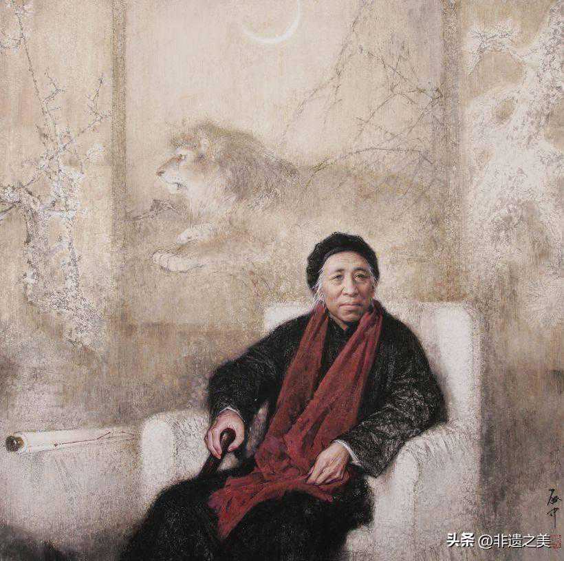 ▲伍启中《双清楼主-何香凝》136×136cm1994年国画获省美展铜奖全国美展作品