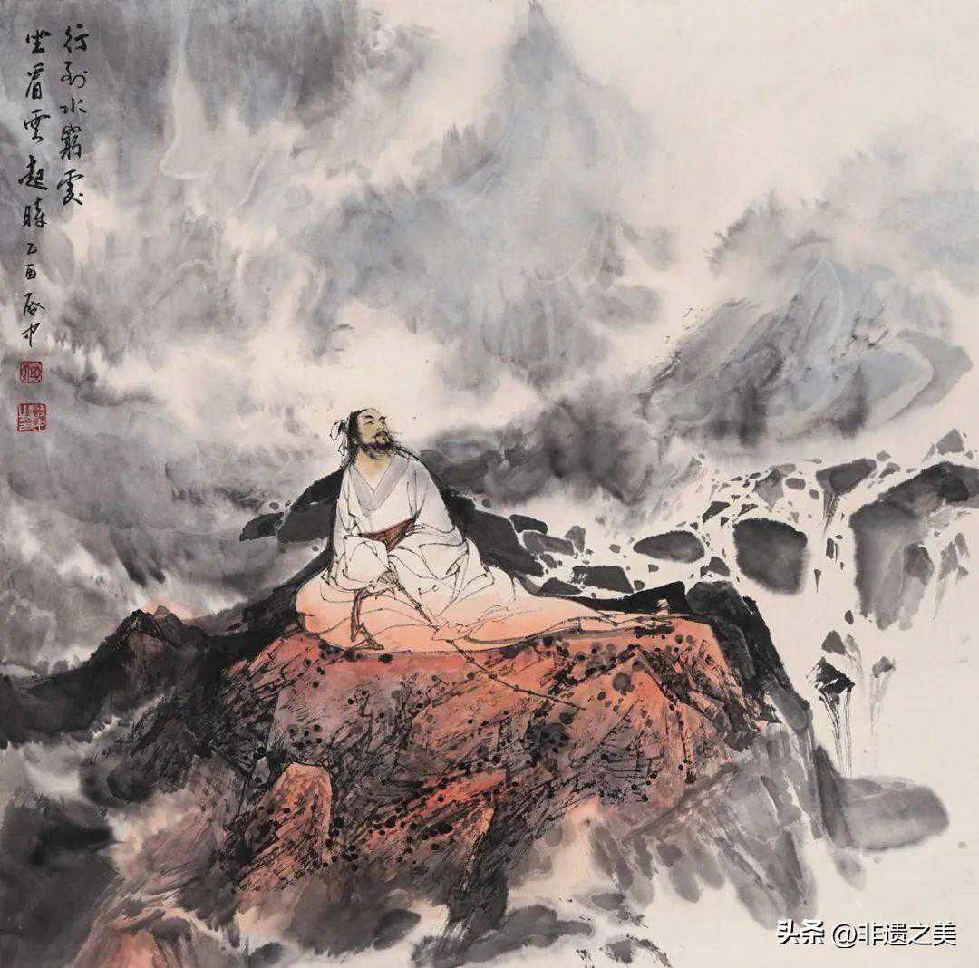 因此,他把自己写意人物画的立足点建立在笔墨的最高形态上实现造型最高要求,换句话说,即在“形”的约束中体现笔墨的自身价值。他以他创作的大量作品实证:他自觉地接受着“形”的约束,努力在严谨的造型中显示出笔墨的魅力,绝不牺牲“形”的美感为代价。即使在十分随意的水墨人物小品中,也仍然以造型的准确生动为特征。甚至可以说,在他的一些优秀水墨作品中,化机四处,神游其间,造型的严谨与笔意洒脱已经取得了和谐的统一。