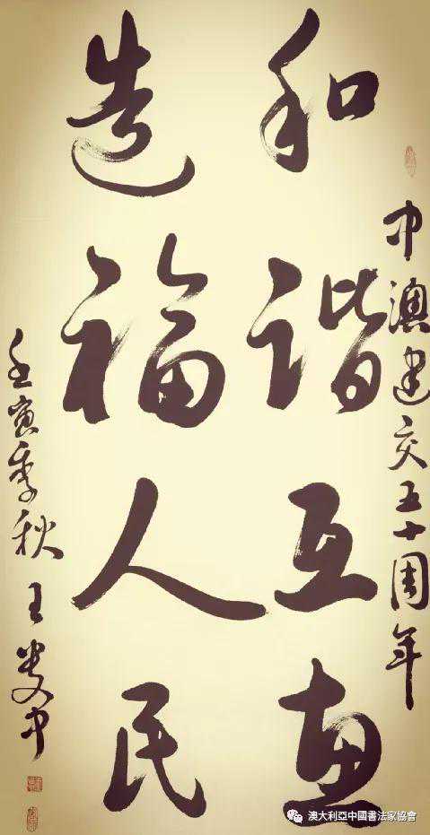 我希望澳大利亚中国书法家协会为促进中国和澳大利亚两国之间的友谊继续发挥正能量,并作出更大的贡献。