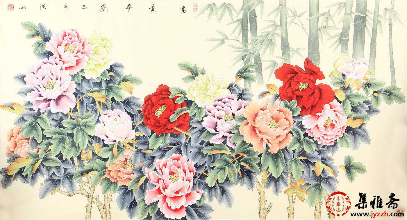 “阅尽大千春世界,牡丹终古是花王”、“雅称花中为首冠,年年长占断春光”,从古至今,文人对牡丹的赞咏之词浩如烟海。人们之所以喜欢国画牡丹,不仅仅是它那姹紫嫣红的花色、雍容华贵的气质,更在于它是集颜值、寓意、风水于一身的中国传统吉祥画!