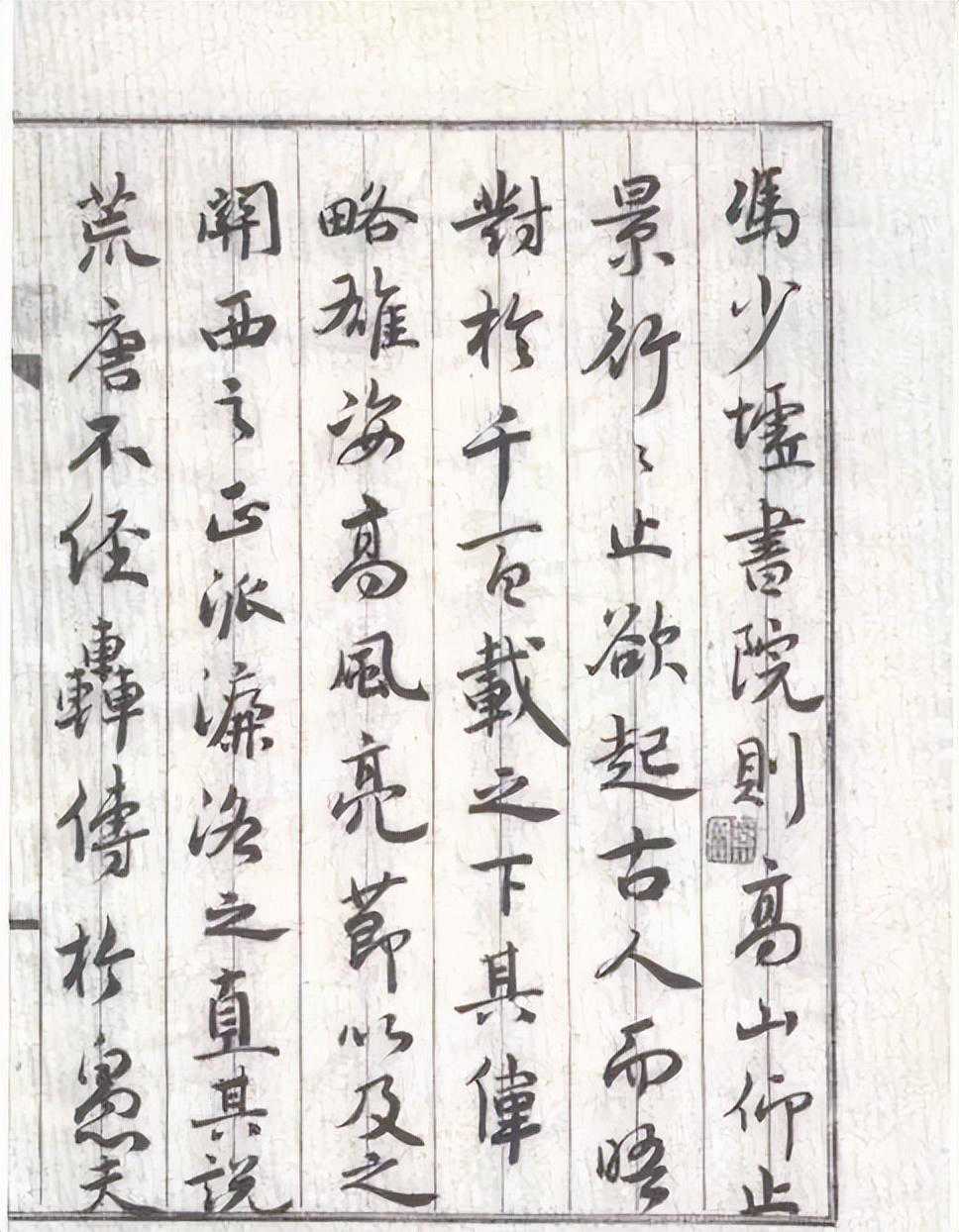 该册近八百言,书法清秀疏朗,文质彬彬,得帖学精髓。奚冈刻印用切刀,苍涩古朴,为书学中之“碑体”。一秀一朴,甚为有趣。