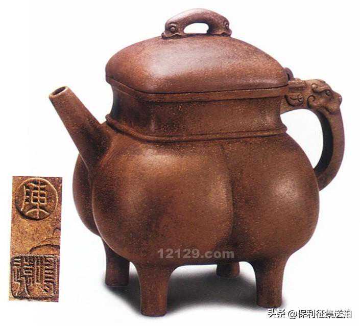 -高6.8厘米,长15.2厘米-壶底有“鸣远”行书刻款,“陈鸣远”篆书阳文方印。此壶现藏上海博物馆。