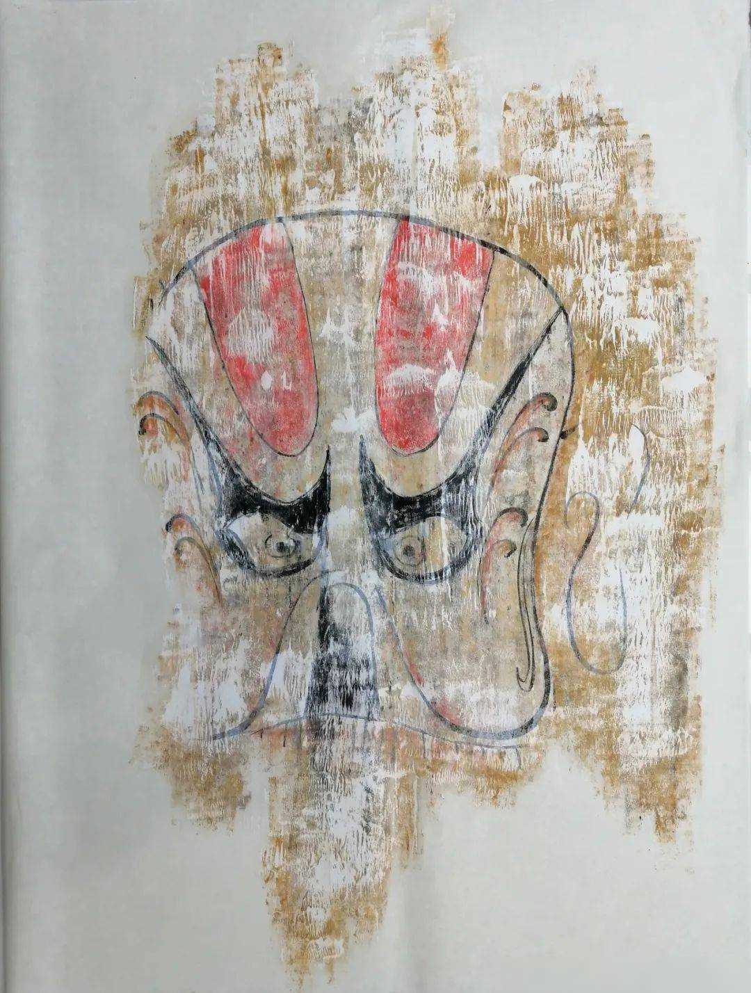 再看看他的脸谱作品,《脸谱》以68x46cm的画幅,呈现了丰富多彩的人性面孔。这些脸谱,有的深沉,有的欢愉,有的忧郁,仿佛是一个个生命的缩影。沈鼎雍通过绘画,不仅仅描绘了面孔,更是深入解读了人性的多面性,呈现出了一场关于内心深处的探索。