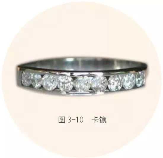 圆形宝石卡镶时,因圆形的接触点是两点,很容易松动,且款式若经改指圈,金属变形后张力变小,宝石镶嵌不牢固。卡镶款式牢固性差,不适合于改指圈戒指。消费者在购买此种珠宝款式时,应明白这一点。