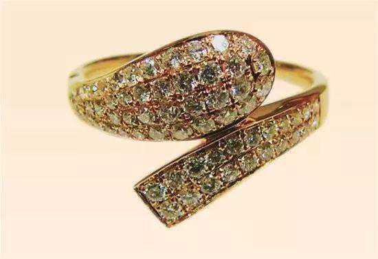 黄色K金镶钻要注意的是,由于黄色外框颜色的反射,实际上最高等级的D色和相差5个色级的I色,一般人基本无法分辨。镶嵌好的首饰,在不同的光源如太阳光、白炽光、日光灯下,观测到的结果也有差异,挑选钻饰时要注意这一点。