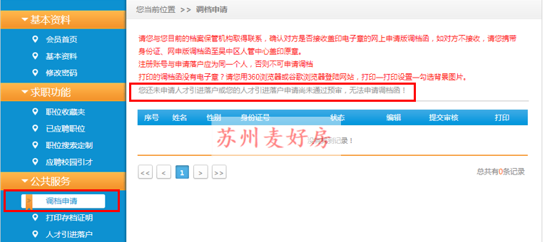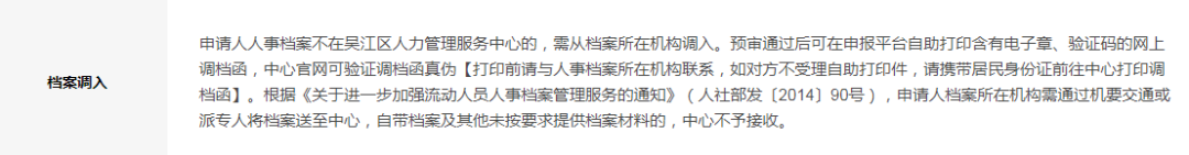 打印完《调档函/商调函》后,与原档案保管机构取得联系,申请将档案调入吴中区人管中心。