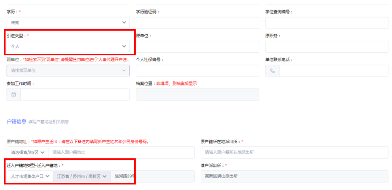 第七步:填写个人信息,个人申请有几点需要注意一下,如下图引进类型选择个人,迁入户籍类型可以无房的选择人才市场集体户口。
