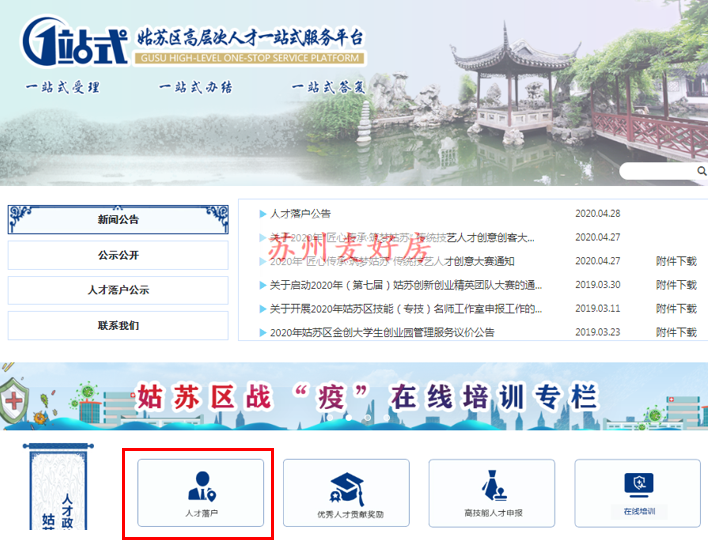 第一步:打开姑苏区高层次人才一站式服务平台网站,网址: