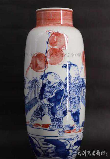饶晓晴大师擅长色釉和粉彩、新彩综合装饰、古彩。他的作品大多以高温色釉作底色,采用国书技法,以线造型。他注重色彩、形象、构图的形式美和视觉效果。他根据器型的特点来装饰书面,色彩讲究自然渐变和冷暖构成关系。他能将思想、见识、情感形象地体现在作品中,使作品成为他艺术风格的表现载体。