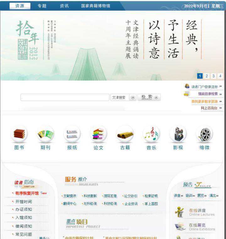 5.国家图书馆中国国家图书馆在线网站,有非常丰富的图书、期刊、报纸、论文、古籍等资源